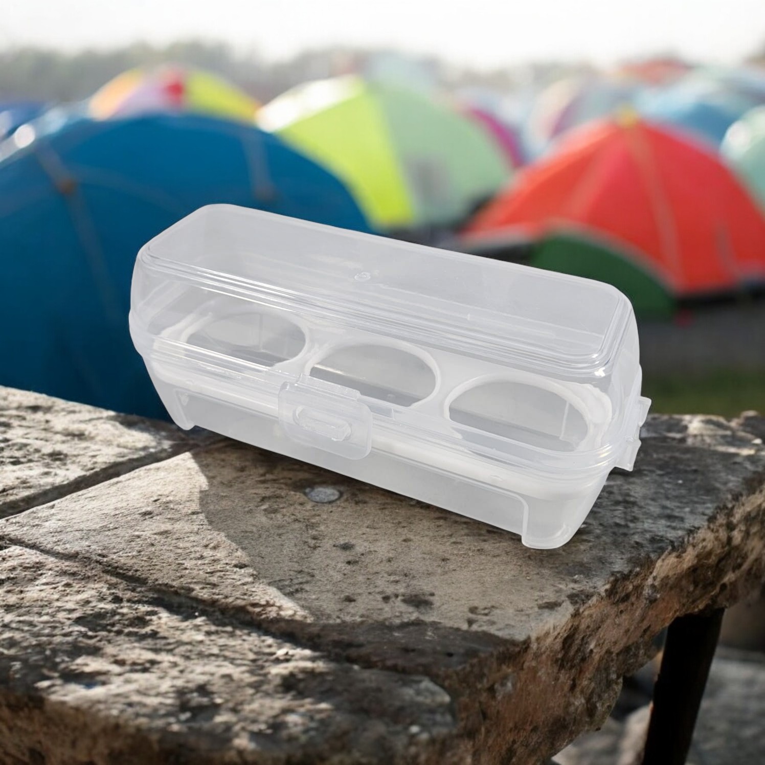 Ingin membawa telur untuk dimasak saat camping secara aman? Anda bisa menggunakan tempat telur dari Gingira. Hadir dengan 3 slot khusus yang pas untuk meminimalisir guncangan sehingga telur tidak akan pecah. Terbuat dari material plastik yang tahan air dan tahan lama. Memiliki lubang untuk gantungan, Anda bisa membawanya dengan menggantungnya di tas sehingga memudahkan aksesnya.
