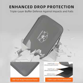| Perlindungan Maksimal Dengan menggunakan tas drone, setiap perangkat yang disimpan akan terhindar dari goresan dan benturan. Hal ini berkat material PU yang digunakan untuk menyerap benturan di bagian luar dan material lycra lembut di bagian dalam. Materialnya juga tahan percikan air untuk perlindungan yang lebih maksimal. |