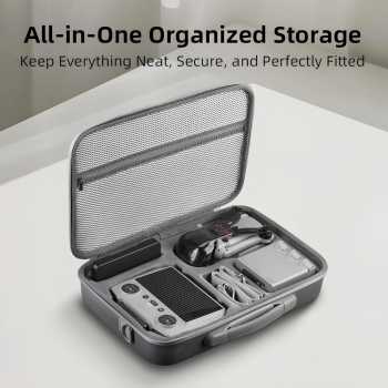 Jaga drone Anda tetap aman sampai di tujuan menggunakan tas drone dari GiNiffe. Desainnya memang dirancang khusus untuk drone DJI Mini 5 Pro dan aksesori pendukungnya. Anda bisa menempatkan drone dan aksesorinya di kompartemen utama dan slot tambahan di tutup. Soal keamanan tak perlu diragukan karena struktur anti benturan dari material PU dan bagian dalam lycra yang lembut mampu melindungi secara sempurna.