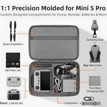 | Sempurna untuk DJI Mini 5 Pro Dibekali kompartemen sesuai bentuk drone DJI Mini 5 Pro, remot kontrol RC-N3 atau RC-2, charging hub, ND filter set, dan slot untuk tali atau kabel charger. Desain inilah yang akan memastikan drone dan aksesori pelengkapnya tidak bergeser serta tetap rapi saat dibawa. |