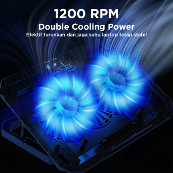 | Laptop Dingin Merata 2 Kipas dengan kecepatan hingga 1200 RPM sebarkan udara dingin secara merata ke seluruh permukaan laptop. Efektif turunkan dan jaga suhu laptop agar tetap stabil saat menjalankan game berat sekalipun. |