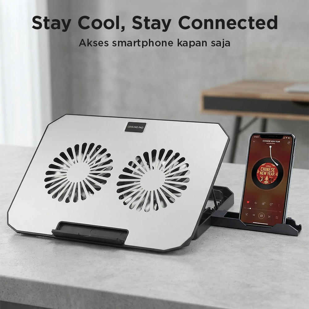 | Ukuran Universal untuk Semua Menawarkan ukuran universal, gunakan cooling pad laptop untuk meletakkan berbagai barang. Mulai dari smartphone, tablet, hingga laptop 17 inch, pastikan suhu perangkat tetap stabil selama digunakan. |