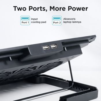 | Dual Port Multitasking 2 Port USB membuat Anda tetap bisa menggunakan cooling pad dan aksesors laptop lain, seperti mouse atau flashdisk secara bersamaan. Tanpa perlu menggunakan konektor tambahan. |