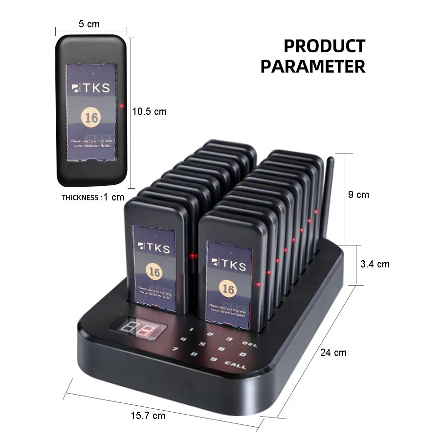 Dengan wireless calling system dari RETEKESS, Anda tidak perlu lagi memanggil pelanggan secara manual. Produk ini terdiri dari transmitter dan receiver (pager) sebagai bel pemanggil otomatis. Saat tombol pada transmitter ditekan, pager akan menyala sebagai indikator pemanggilan. Tersedia berbagai mode pemanggilan yang bisa Anda atur. Jarak transmisinya luas dan stabil berkat hadirnya antena.