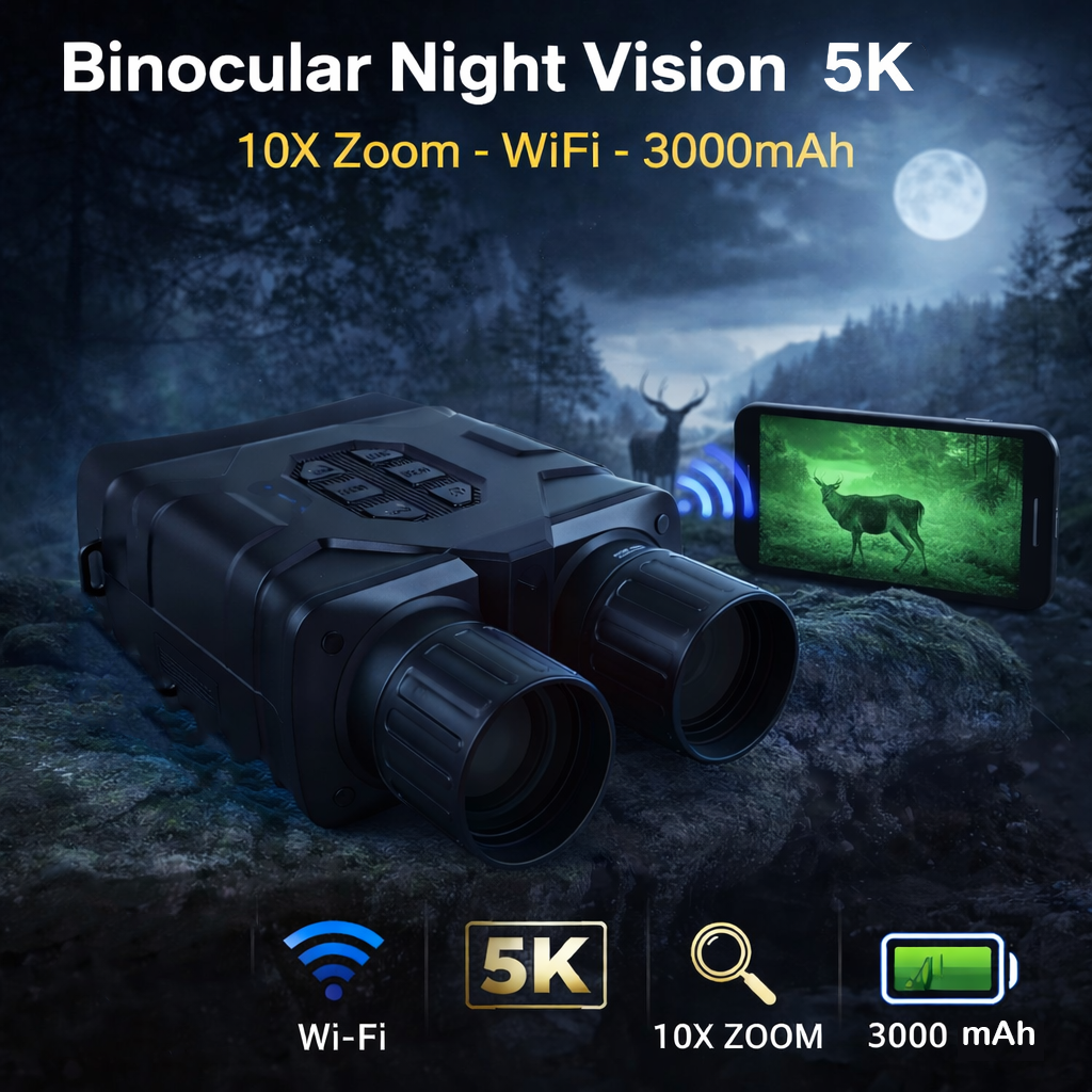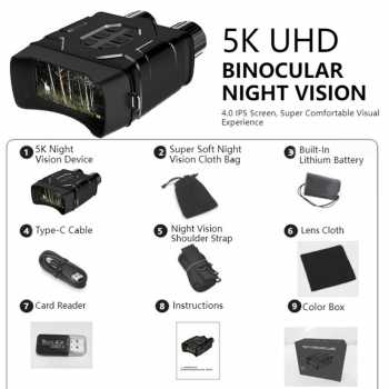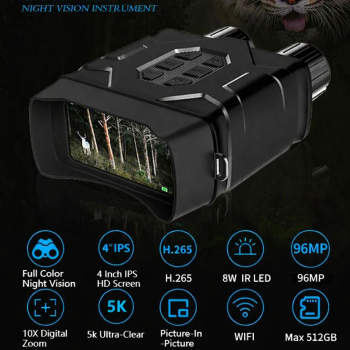 GOYOJO teropong binocular dengan resolusi 5K ultra-high definition dirancang untuk pengamatan siang dan malam. Mampu menampilkan gambar berwarna pada kondisi cahaya rendah, mode infrared untuk kondisi gelap. Layar besar 4 inch, 10X digital zoom, wifi, penyimpanan hingga 512 GB, hingga kapasitas baterai 3000 mAh membuat teropong ini mudah digunakan di mana saja dan kapan saja.