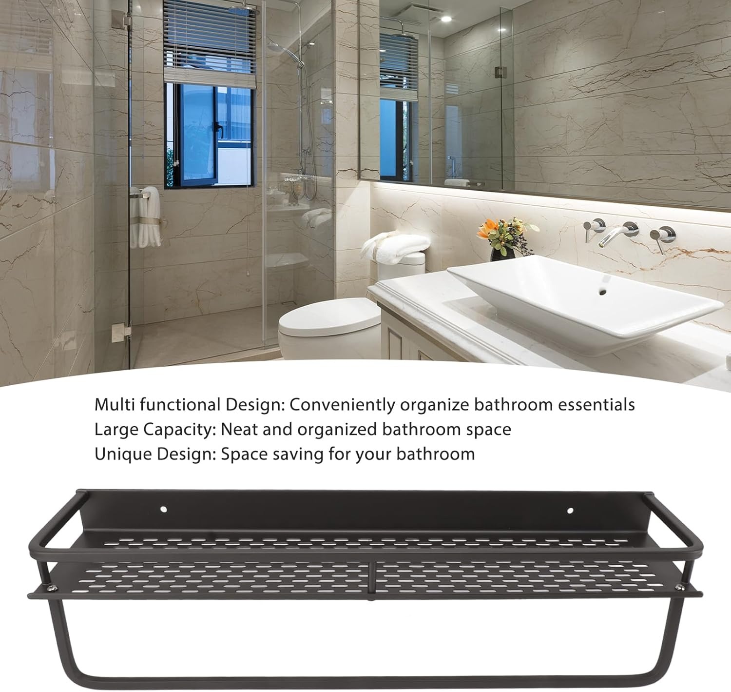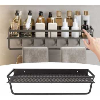 Apakah Anda sering merasa kekurangan ruang di kamar mandi untuk menyimpan handuk dan perlengkapan lainnya? Jika iya, Anda harus menggunakan rak dinding kamar mandi yang satu ini. Rak utamanya memiliki ruang yang cukup lebar sehingga cocok digunakan untuk meletakkan sampo, sabun mandi, dan perlengkapan lainnya. Di bagian bawahnya juga tersedia gantungan handuk serta 5 hook. Terbuat dari material kualitas terbaik yang kokoh. Pemasangannya mudah, baik menggunakan lem maupun baut dan fischer.