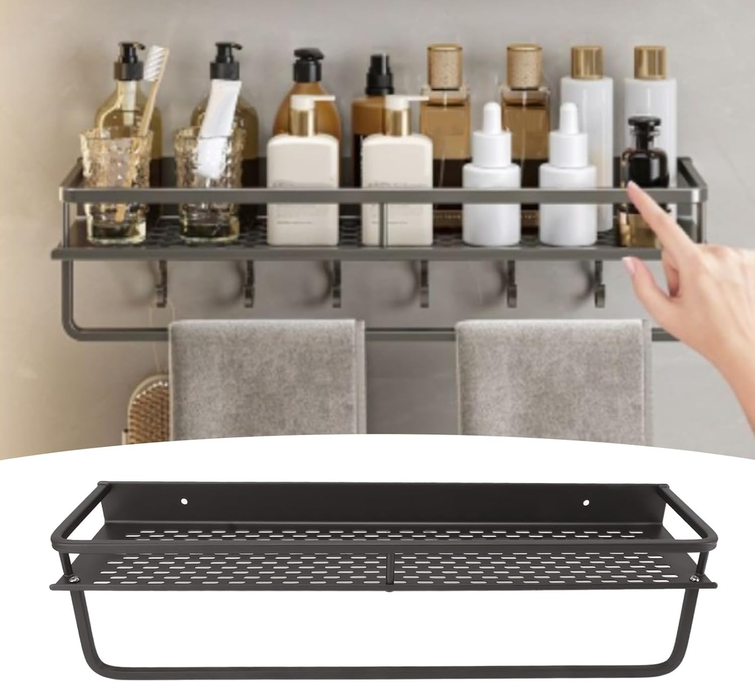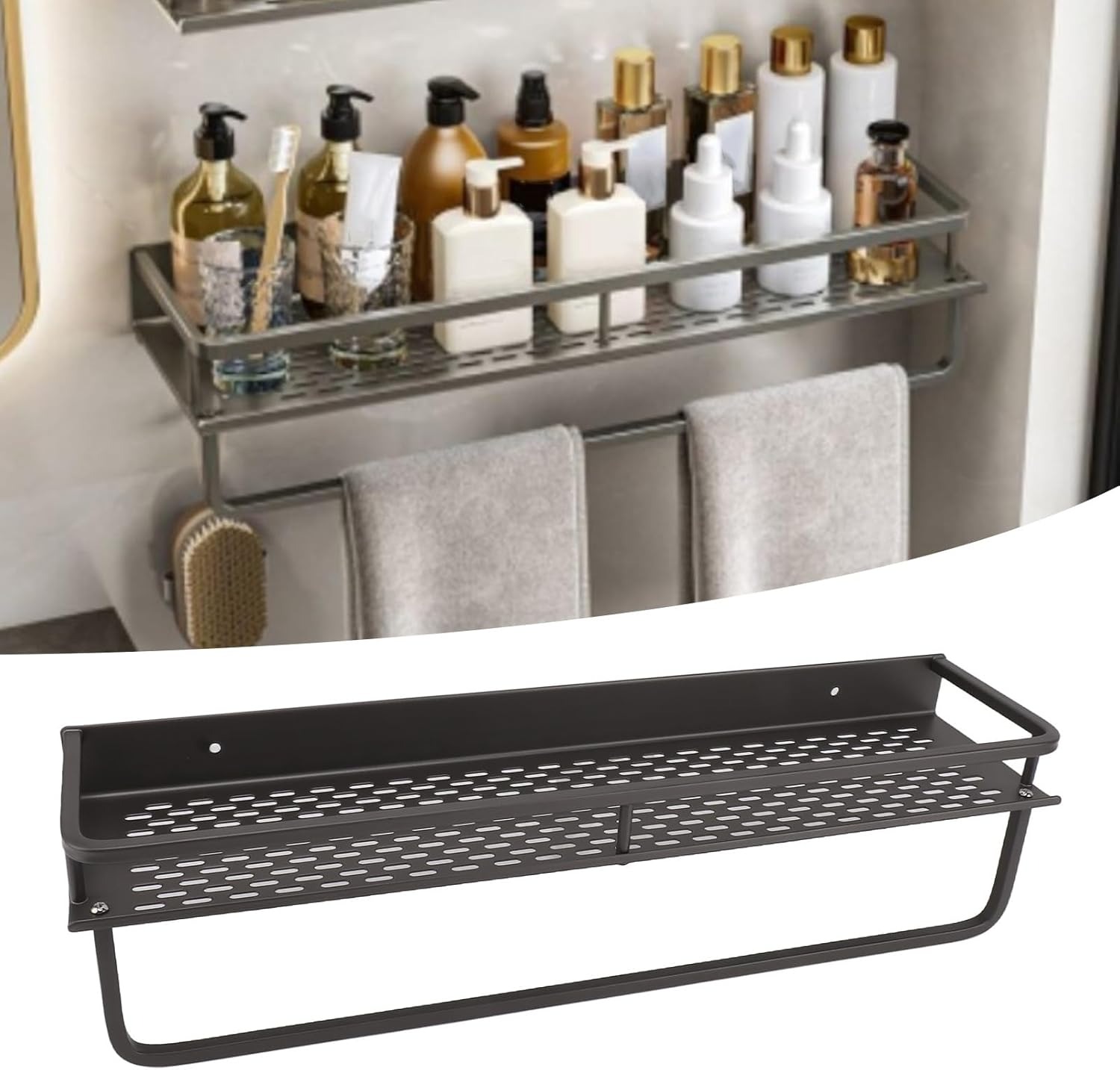 | Kokoh dan Tahan Karat Terbuat dari space aluminium, rak ini tidak hanya tahan karat dan korosi, tetapi juga ringan dan kuat. Material ini memastikan rak mampu menahan beban handuk basah maupun perlengkapan mandi lainnya tanpa masalah. |