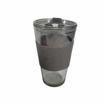 Gucgres Gelas Tumbler Kopi Kaca Glass Cup Leather Cover with Straw 450ml - HD-12 - Gray