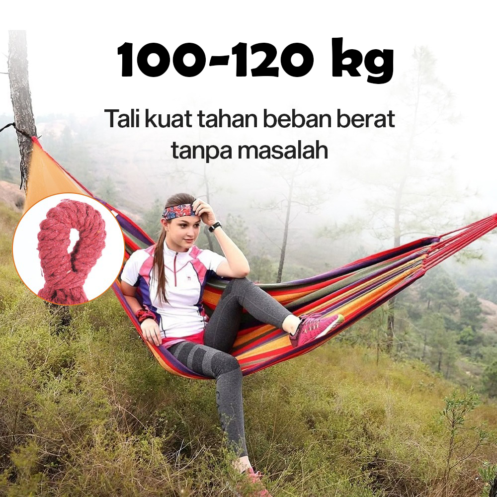 Rasakan sensasi bersantai di alam terbuka dengan lebih nyaman menggunakan hammock kanvas tebal ini. Dirancang untuk menemani aktivitas outdoor seperti camping, hiking, atau sekadar bersantai di halaman rumah. Kombinasi bahan kanvas kuat dan tali pengikat tebal membuat hammock ini mampu menahan beban hingga 120 kg tanpa mengurangi kenyamanan. Dengan desain ringkas dan mudah dibawa, hammock ini menjadi perlengkapan wajib bagi pencinta alam yang ingin menikmati waktu istirahat dengan tenang dan aman.