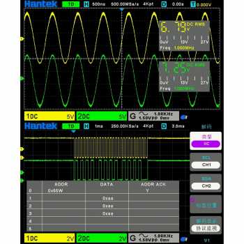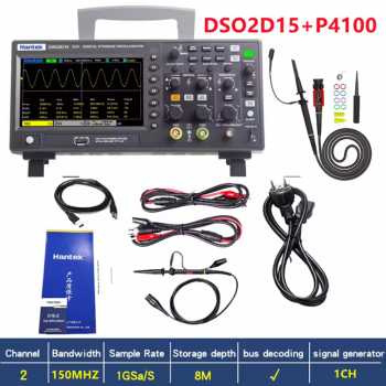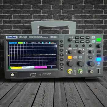 Oscilloscope dari Hantek digunakan untuk mengukur, menampilkan, dan menganalisis sinyal listrik sekaligus menghasilkan sinyal uji. Dilengkapi dengan berbagai fitur dan spesifikasi canggih seperti 2 channel pengukuran, 1 channel genarator sinyal, pita analog 150 MHz, laju sample 1 GSa/s, memori 8 M, sistem trigger lengkap, 32 pengukuran otomatis, dan lainnya. Lengkap dengan layar digital berwarna yang jernih dan tombol intuitif sehingga mudah digunakan.
