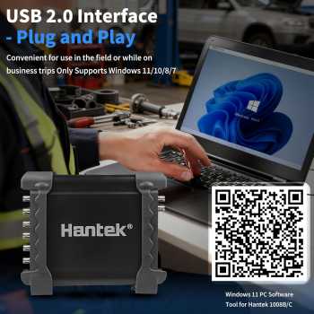 | USB 2.0 Plug and Play Menggunakan antarmuka USB 2.0, osiloskop ini mudah dihubungkan ke laptop atau PC tanpa instalasi perangkat keras tambahan. Cukup colok dan jalankan software, alat siap digunakan. Koneksi yang stabil memastikan transfer data cepat dan tampilan gelombang real-time yang responsif. |