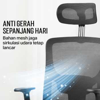 | Anti Gerah Sepanjang Hari Bagian belakang kursi terbuat dari breathable mesh jaga sirkulasi udara tetap lancar. Kini Anda bisa bekerja dengan nyaman tanpa gerah sepanjang hari. |