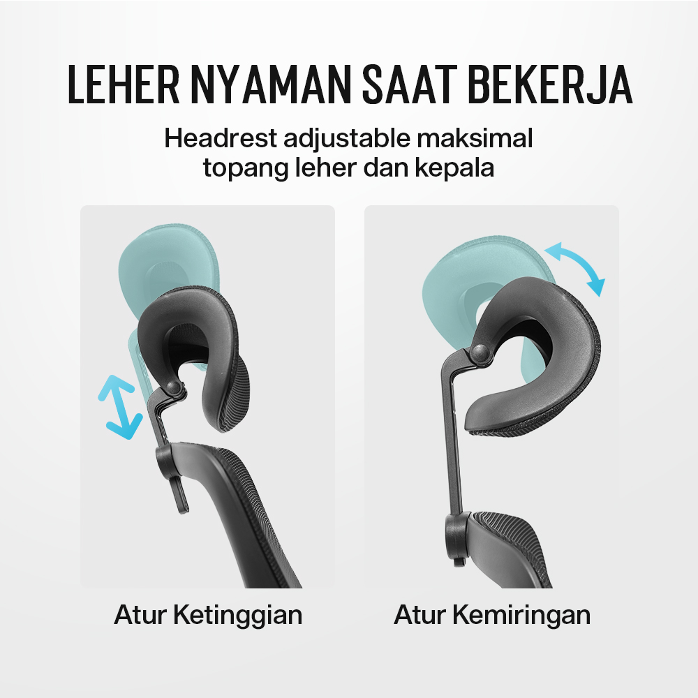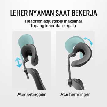 | Leher Nyaman saat Bekerja Headrest adjustable dapat diatur ketinggian dan kemiringannya untuk menopang leher dan kepala dengan maksimal. Cocok untuk penggunaan sehari-hari. |