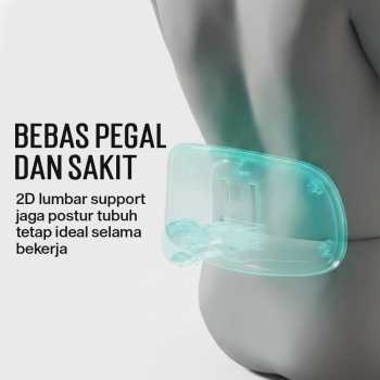 | Bebas Pegal dan Sakit 2D Lumbar support dapat diatur posisinya untuk menjaga postur tubuh agar tetap ideal selama bekerja. Cukup putar knob untuk mengubah posisi lumbar support. |