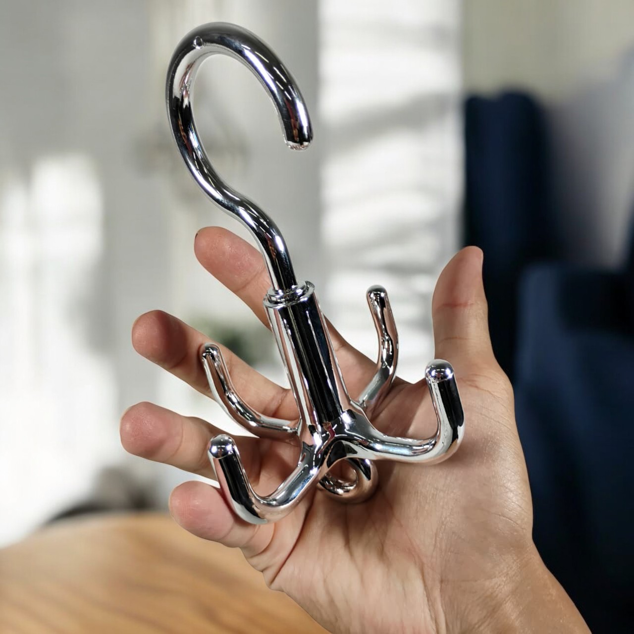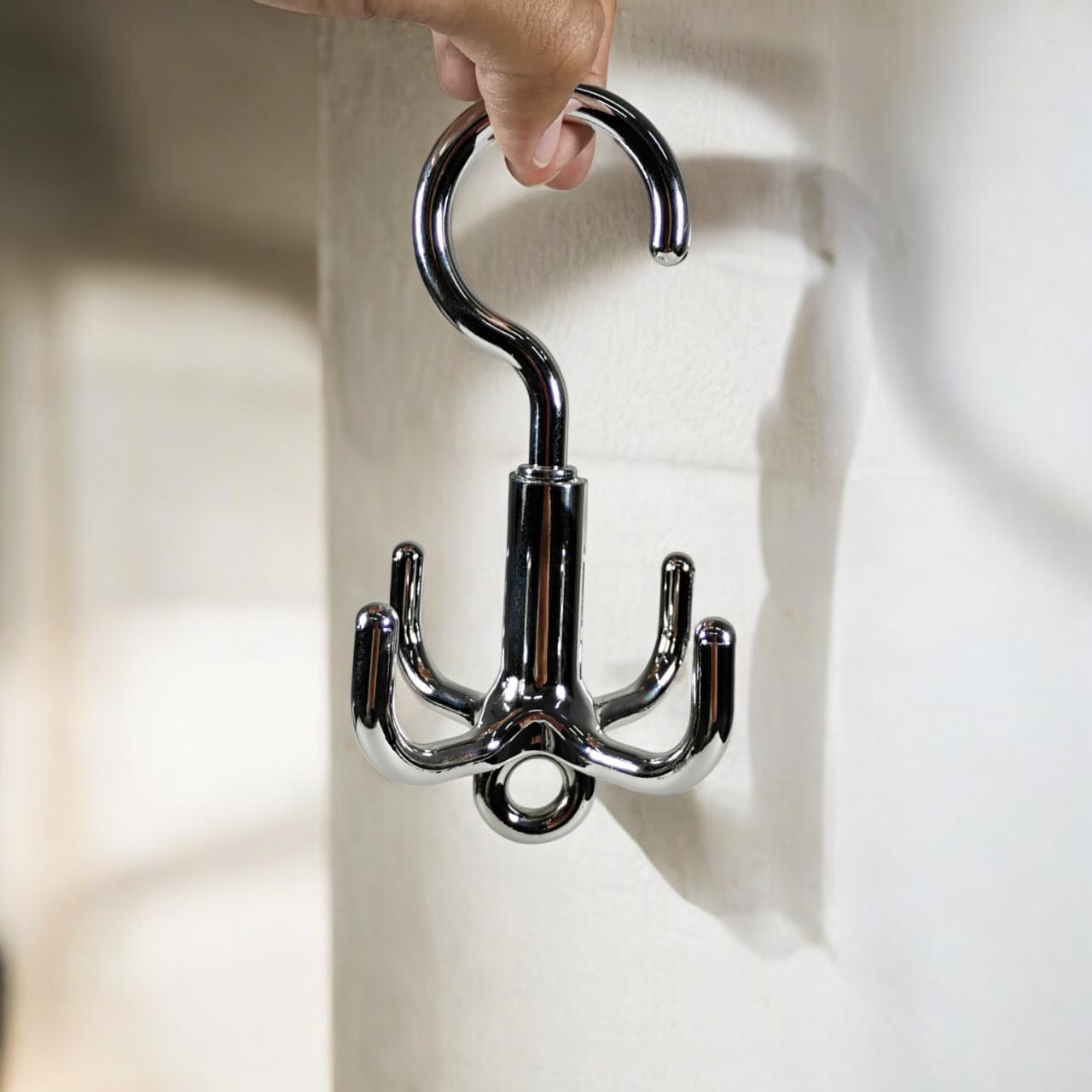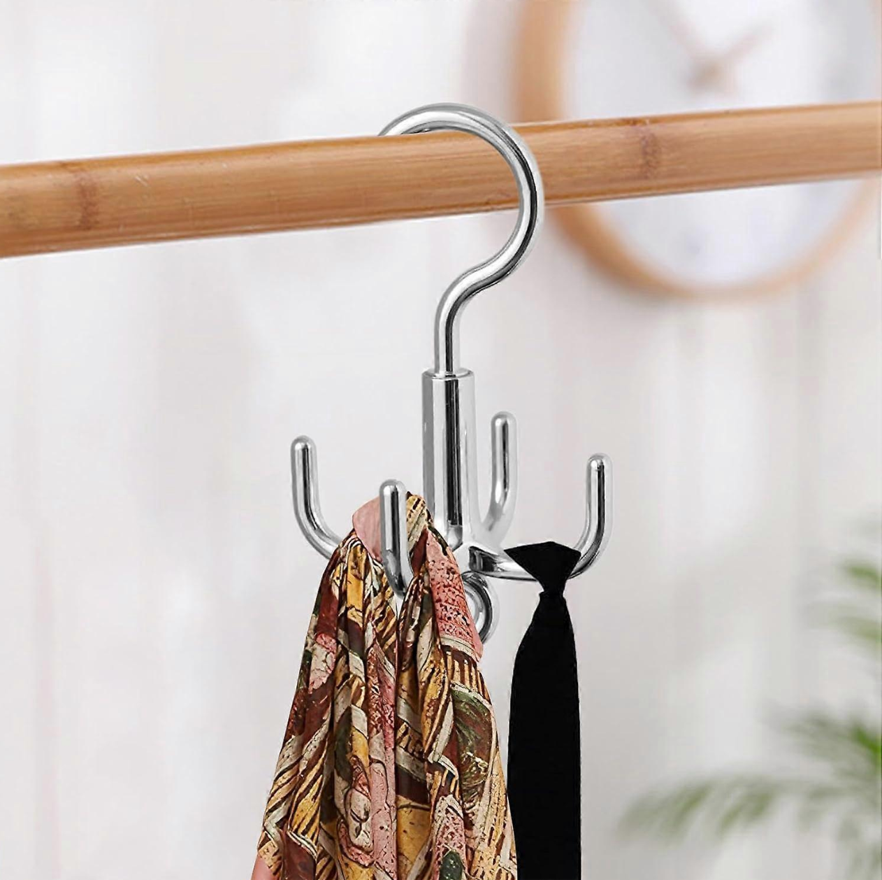 Gantungan multifungsi dengan 4 cabang kuat dan kait putar serbaguna, ideal untuk tas, topi, jaket, ikat pinggang, hingga syal. Hemat ruang, mudah dipasang di berbagai batang gantungan atau rak, terbuat dari plastik ABS premium yang tahan lama, halus, dan aman untuk berbagai bahan.
