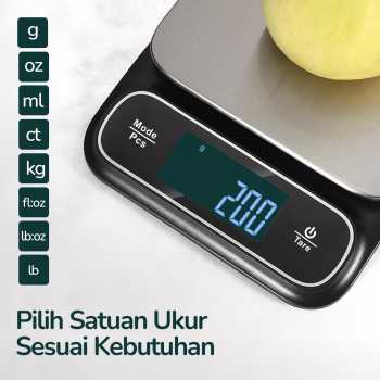 | Fleksibel Pilih Satuan Ukur Butuh alat multifungsi untuk mengukur berat dan volume bahan makanan? Tak perlu khawatir karena timbangan dapur digital ini hadir dengan 8 pilihan satuan ukur yang bisa digunakan pada bahan dalam bentuk padat, bubuk, hingga cair. |