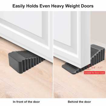 | Kompatibilitas Luas Memiliki desain yang miring dan bergerigi, membuat penahan pintu kompatibel untuk berbagai ukuran pintu atau celah bagian bawah pada pintu dan lantai. Anda bisa menggunakan penahan pintu untuk pintu dari berbagai material mulai dari kayu, plastik, hingga metal. |