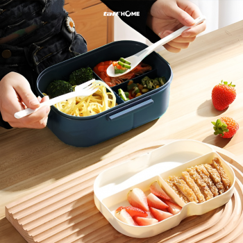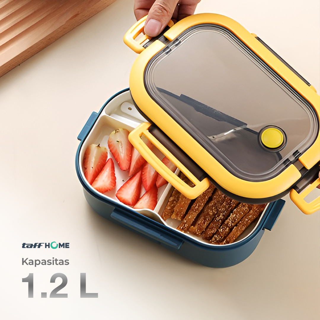 | Bawa Lebih Banyak Makanan Kotak makan HOMEFAVOR berkapasitas 1.2 L dengan 2 layer, masing-masing terdiri dari 3 grid. Memudahkan membawa berbagai jenis makanan secara terpisah, rapi, dan tetap terjaga. |