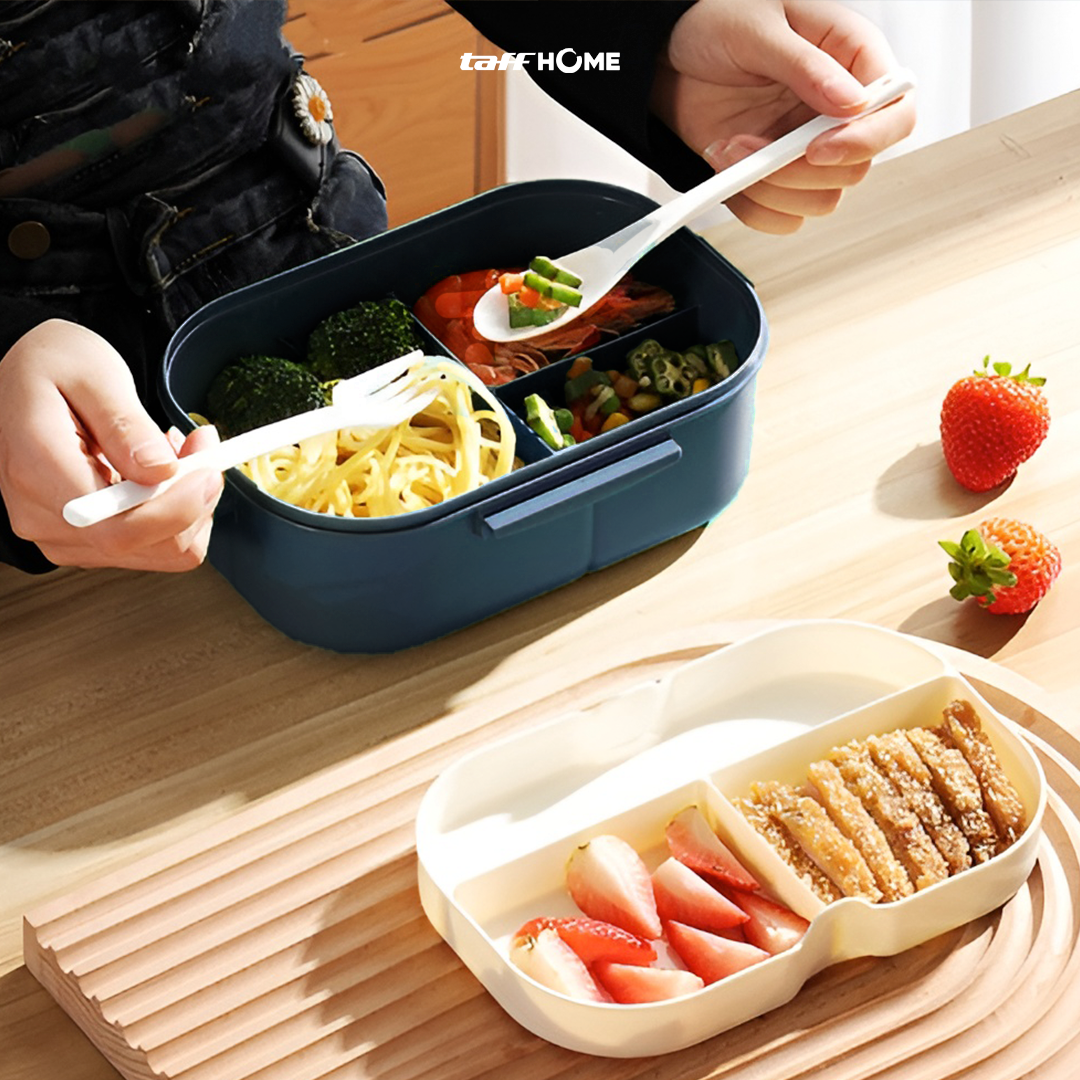 Buat makan siang di kantor atau sekolah lebih praktis dengan kotak makan HOMEFAVOR. Dilengkapi 2 layer dengan masing-masing 3 grid, berkapasitas besar untuk membawa beragam makanan secara rapi. Sudah termasuk sendok dan garpu, praktis dan nyaman untuk bekal harian.
