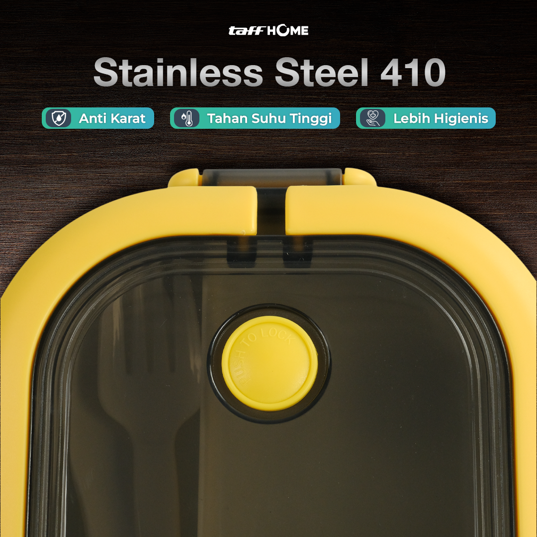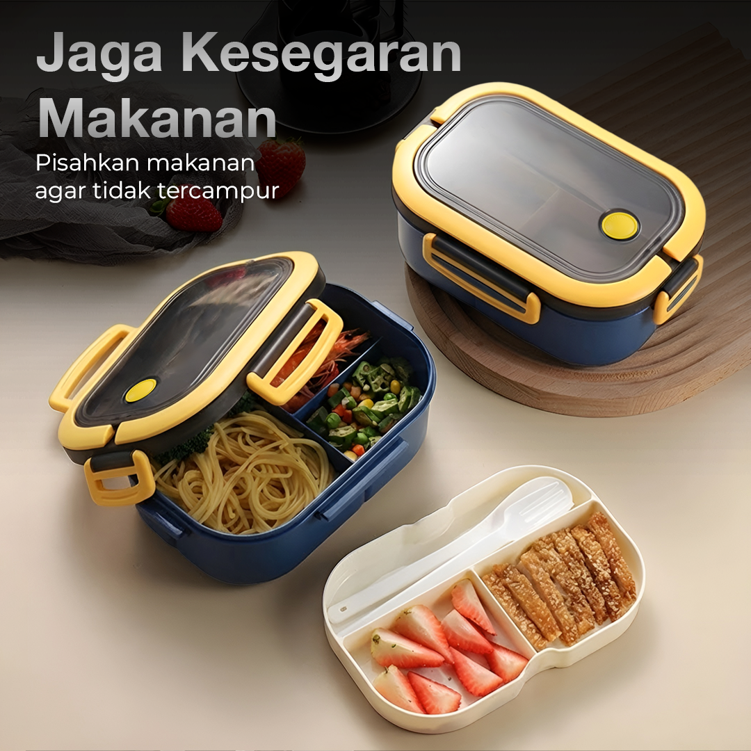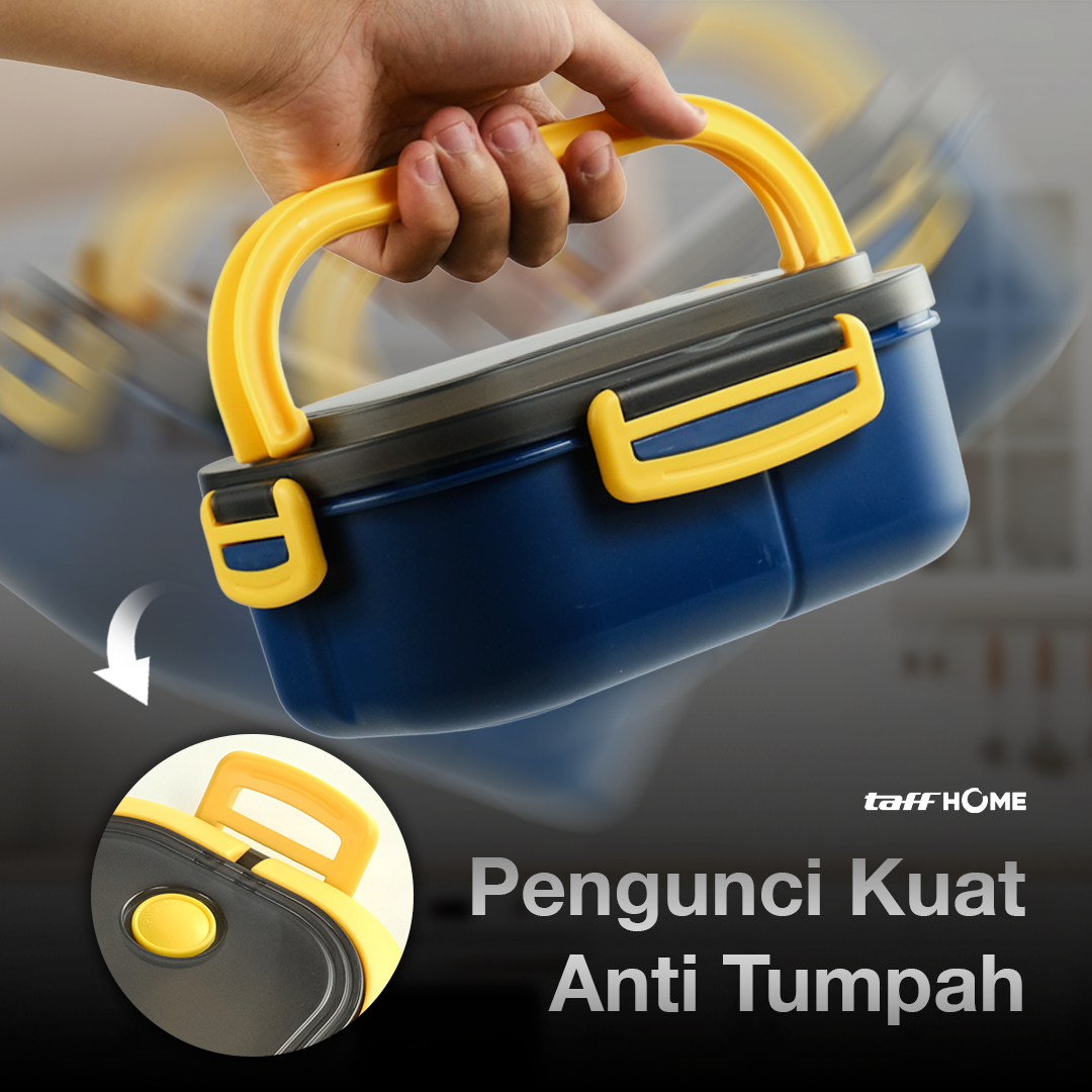 | Tutup Rapat Anti Tumpah Tak perlu khawatir makanan tumpah. Kotak makan dilengkapi 4 segel pengunci dengan karet silikon di bagian dalam, sehingga aman membawa makanan berkuah tanpa takut bocor. |
