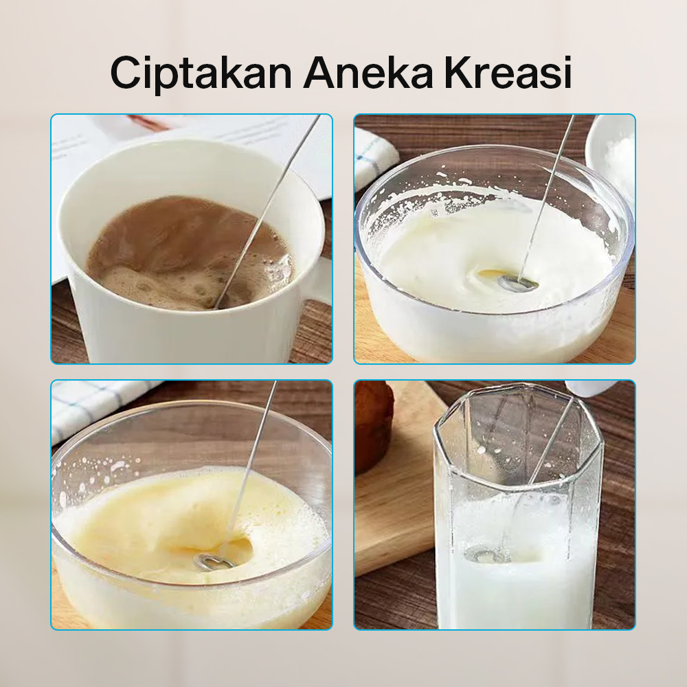 🔹 Hand mixer untuk hasilkan buih susu lembut dan creamy dengan volume banyak dalam hitungan detik.