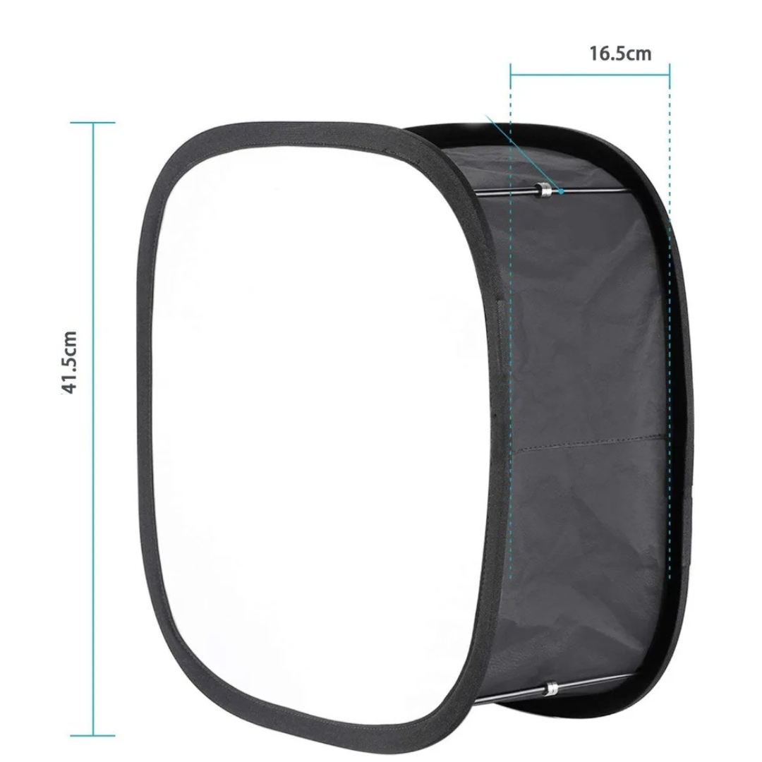 | Portable dan Mudah Disimpan Didesain agar mudah dilipat, softbox ini sangat ringkas dan praktis untuk dibawa ke mana saja. Ketika tidak digunakan, Anda dapat melipatnya menjadi ukuran yang jauh lebih kecil, sehingga menghemat ruang dalam tas kamera atau studio Anda. |