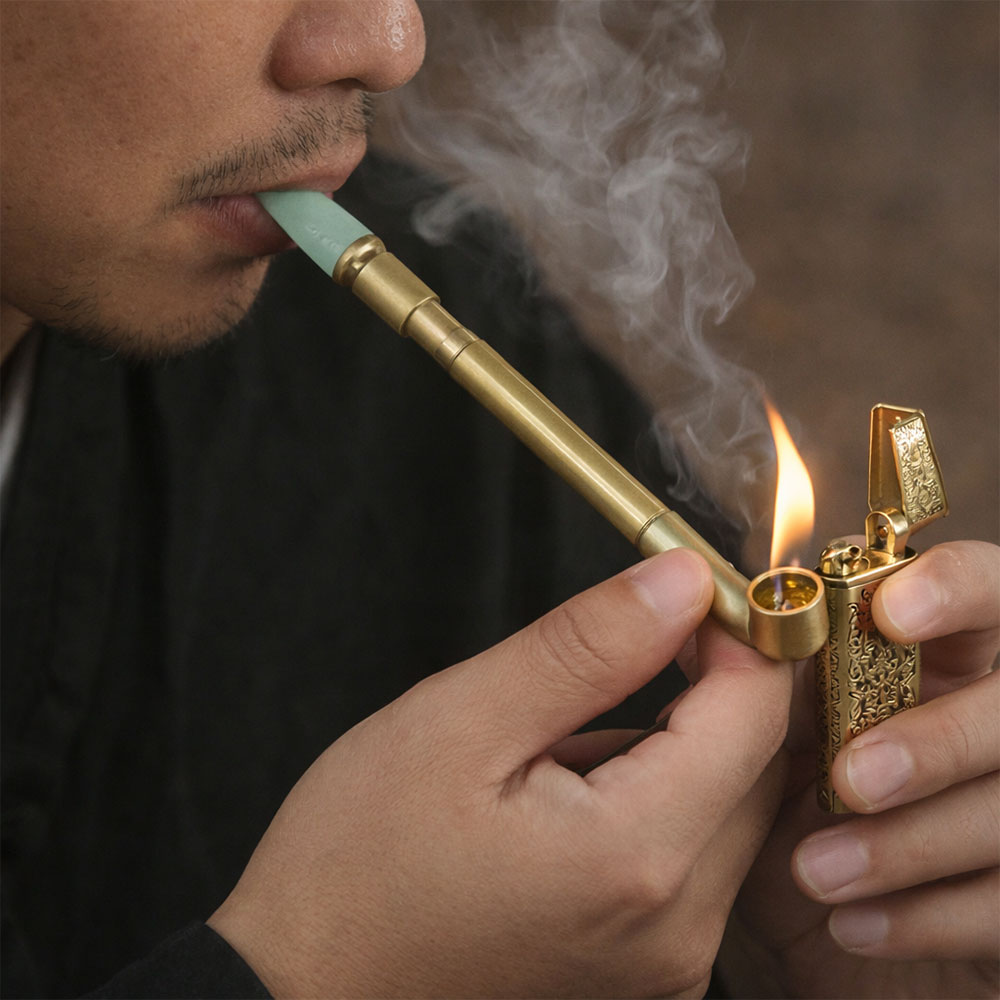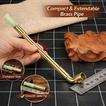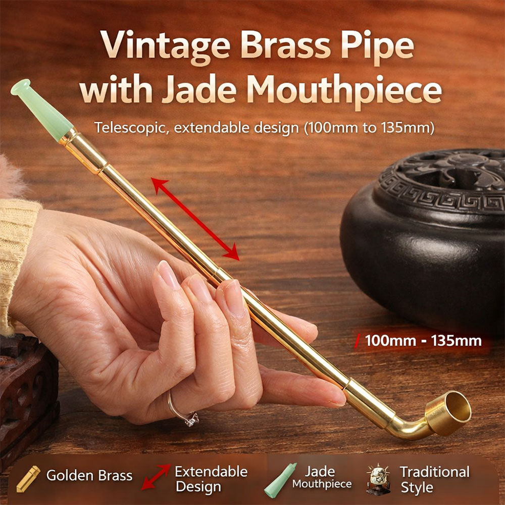 Pipa Rokok Tembakau Vintage berbahan kuningan (brass) dengan jade mouthpiece ini hadir dengan desain klasik elegan dan finishing gold model 817. Bagian mouthpiece menggunakan jade (batu giok) yang memberikan sentuhan eksklusif serta kenyamanan lebih saat digunakan, sementara model 817 dengan finishing warna gold tampil berkelas dan menarik. Dilengkapi sistem teleskopik yang dapat dipanjangkan dari 100 mm hingga 135 mm, membuatnya fleksibel, nyaman digunakan, dan praktis disimpan.