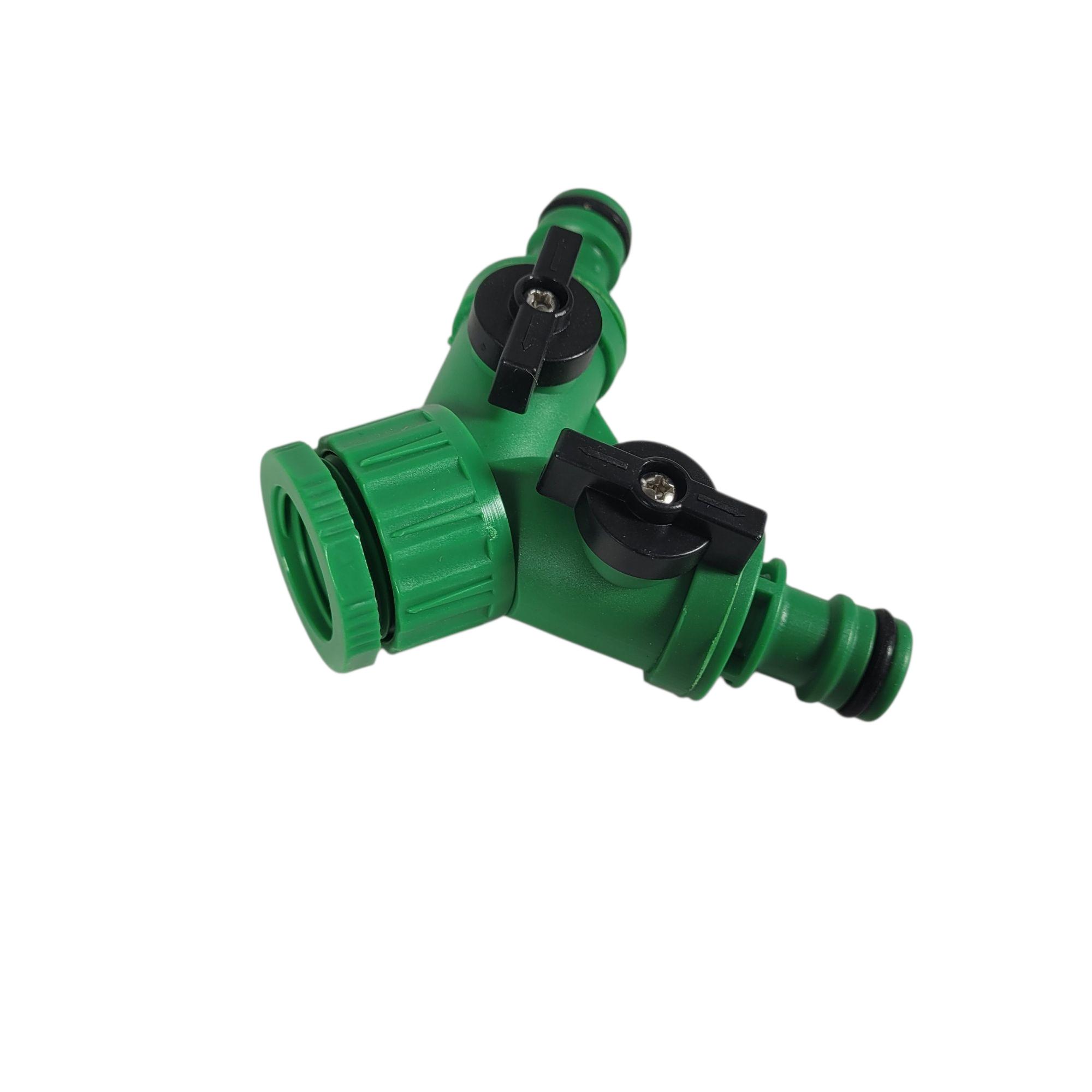 Konektor keran Y adalah alat yang dirancang untuk menghubungkan selang atau perangkat irigasi ke satu keran air. Keran Y mampu membagi aliran air dari satu sumber menjadi dua alur. Dilengkapi dengan katup pada setiap nozzle sehingga Anda bisa mengontrol aliran air. Sangat cocok digunakan untuk proses irigasi taman dan kebun.