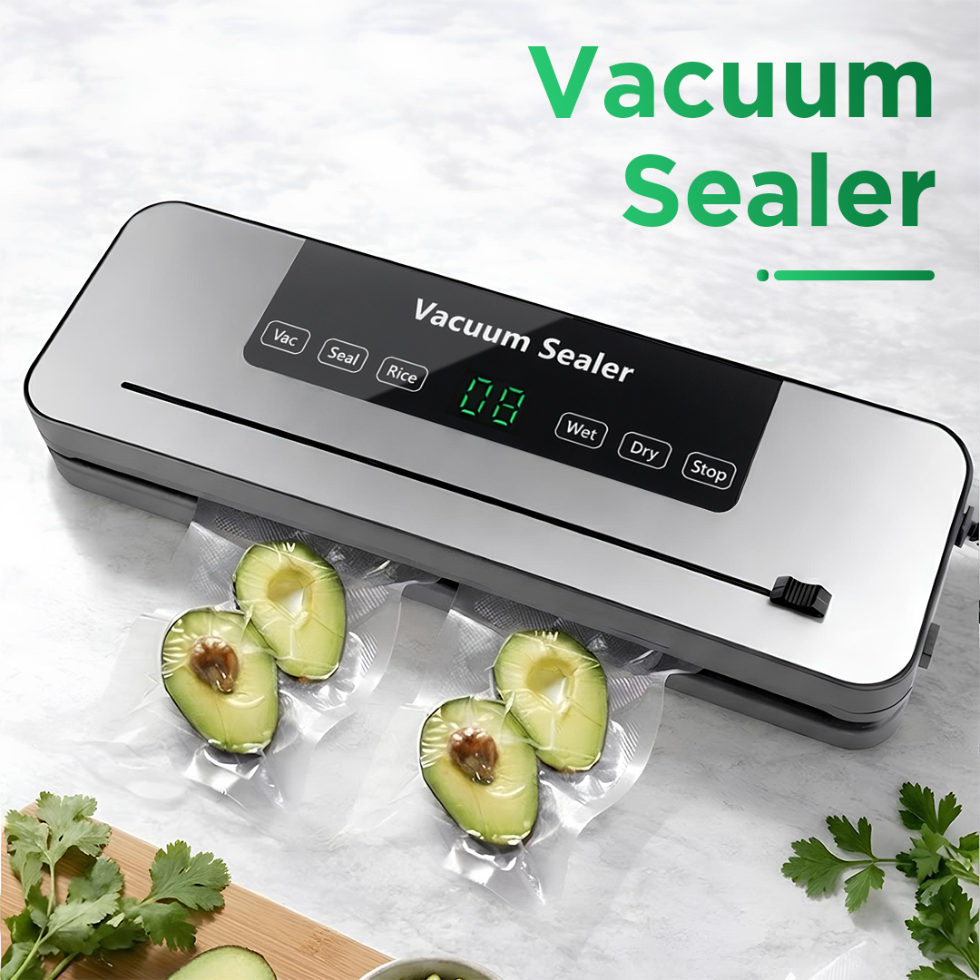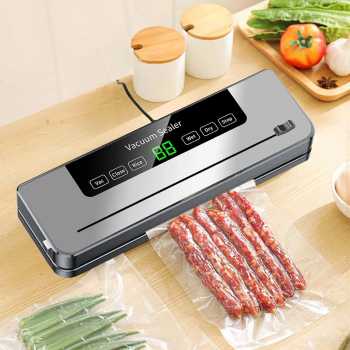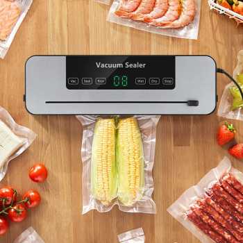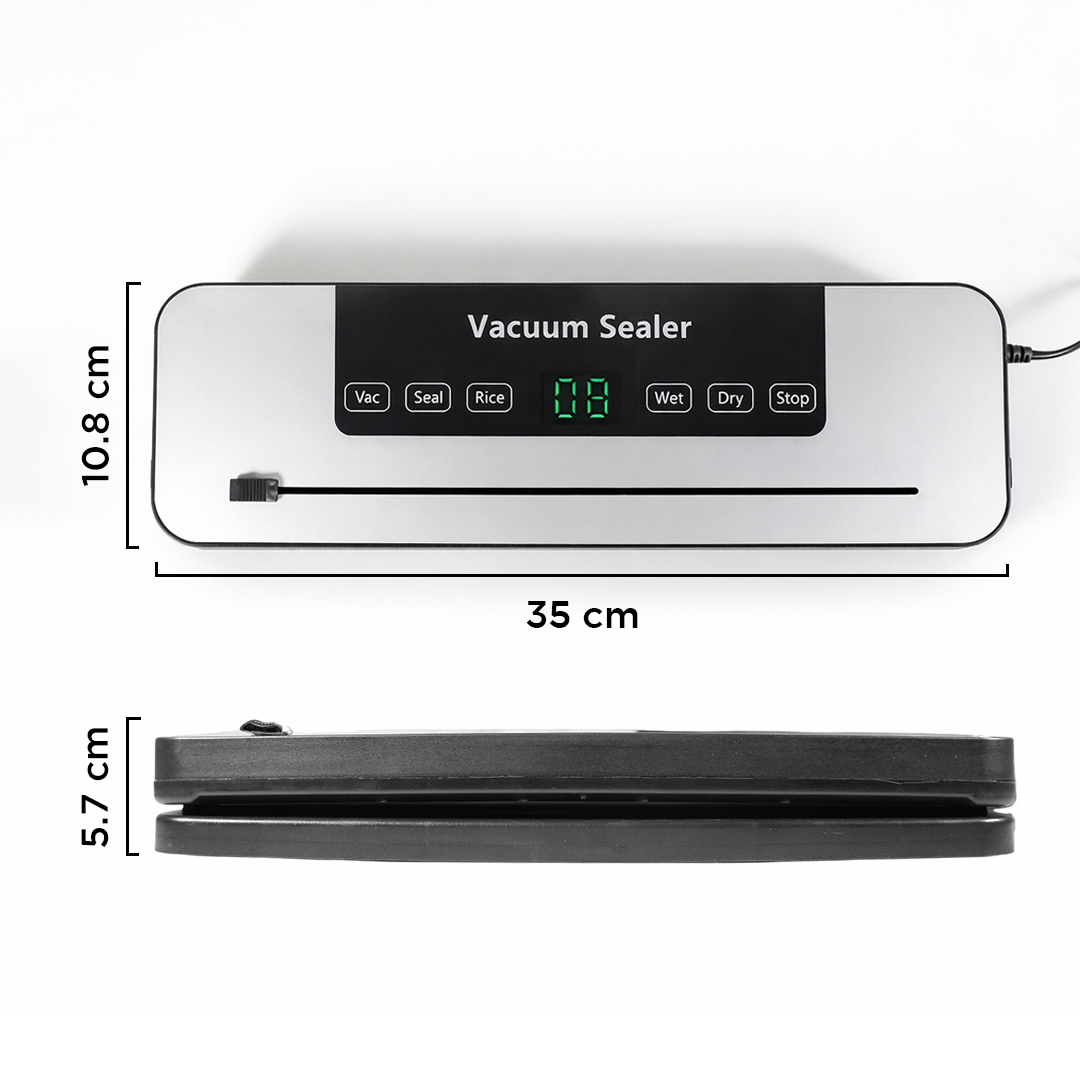 | Solusi Makanan Lebih Tahan Lama Makanan lebih tahan lama dan tidak mudah rusak berkat sistem penyimpanan kedap udara. Vacuum sealer akan menyedot udara di dalam keamasan yang efektif mencegah pembusukan. |