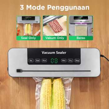 | Segel Aneka Makanan Dibuat untuk berbagai kebutuhan, vacuum sealer ini cocok untuk mengemas aneka makanan, mulai dari kering hingga basah. 3 Mode penggunaan juga membuat penggunaan vacuum sealer lebih praktis. |