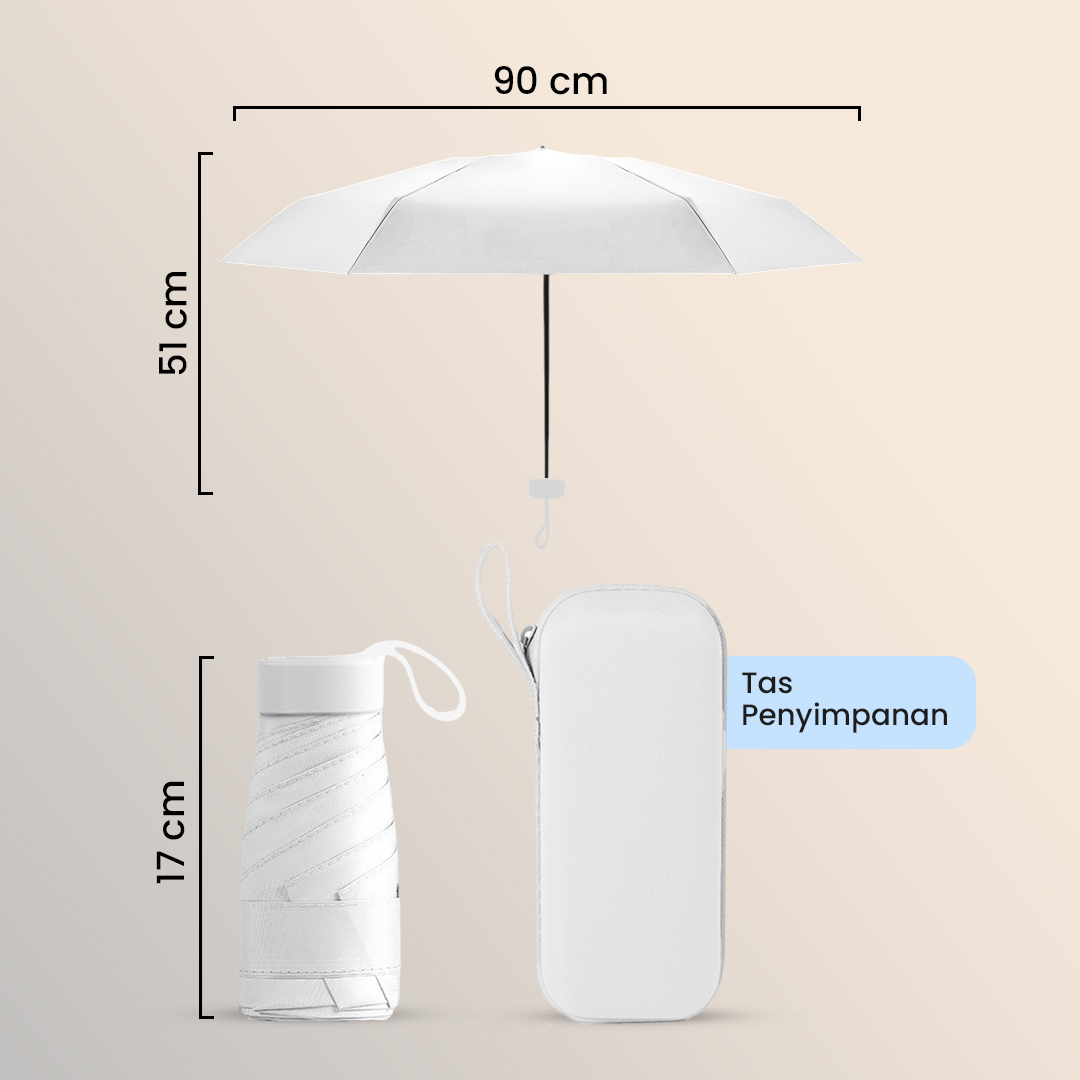 | Portable dan Anti Ribet Menawarkan ukuran mini, ukuran payung lipat ini sama dengan smartphone yang membuatnya mudah disimpan dan dibawa saat bepergian. |