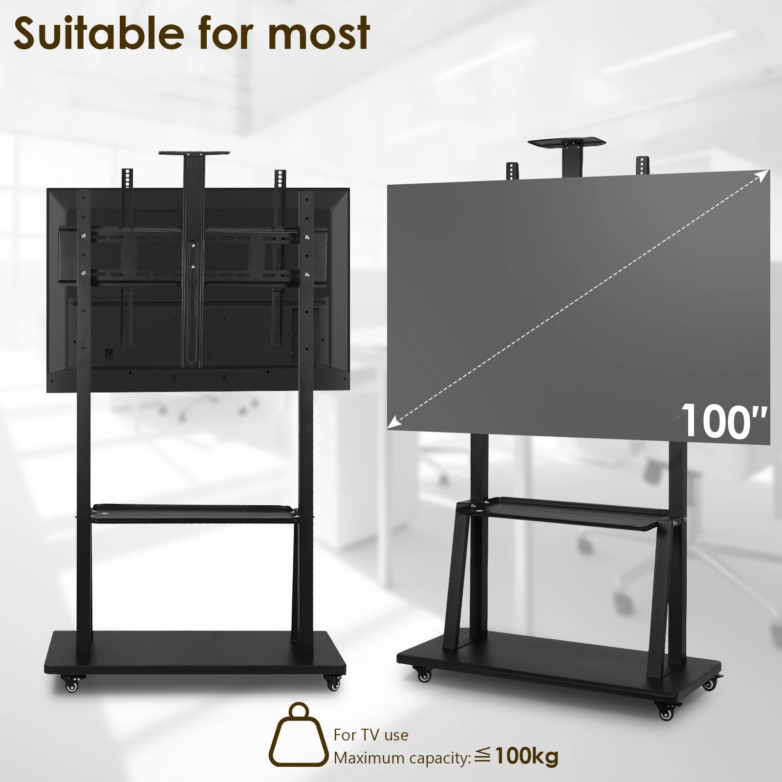 Sajikan tampilan TV yang lebih fleksibel dan rapi dengan bracket TV universal ini. Dirancang untuk TV berukuran 60-100 Inch, mendukung pengaturan ketinggian dan sistem roda untuk mobilitas tinggi. Dengan kemampuan menahan beban hingga 100 kg dan kompatibilitas VESA hingga 900 x 600 mm, bracket TV ini menjadi solusi ideal untuk penggunaan rumah, kantor, sekolah, hingga event profesional.