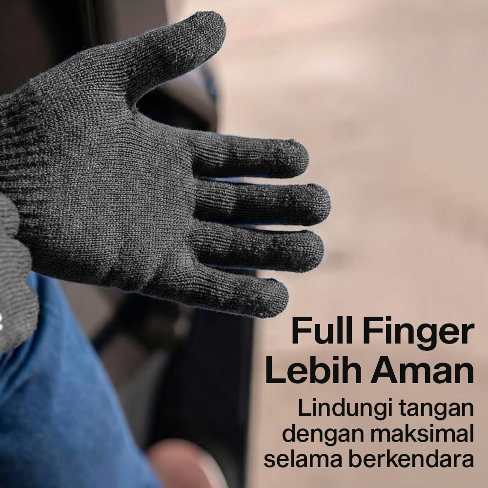 | Full Finger Lebih Aman Model full finger memberi tangan perlindungan maksimal selama berkendara. Kini Anda bisa berkendara dengan tenang tanpa khawatir tangan sakit atau luka karena medan yang ekstrem. |