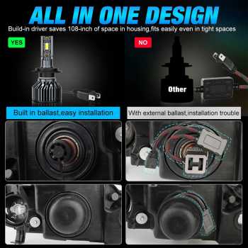 | Hi/Lo Beam Terintegrasi dalam 1 Lampu Setiap lampu memiliki konsumsi daya sebesar 6.5 W, dan dalam satu paket terdapat 2 lampu sehingga total daya menjadi 13 W. Lampu LED ini jauh lebih hemat dan stabil dengan tegangan 12-30 V dan tetap menghasilkan cahaya terang. |