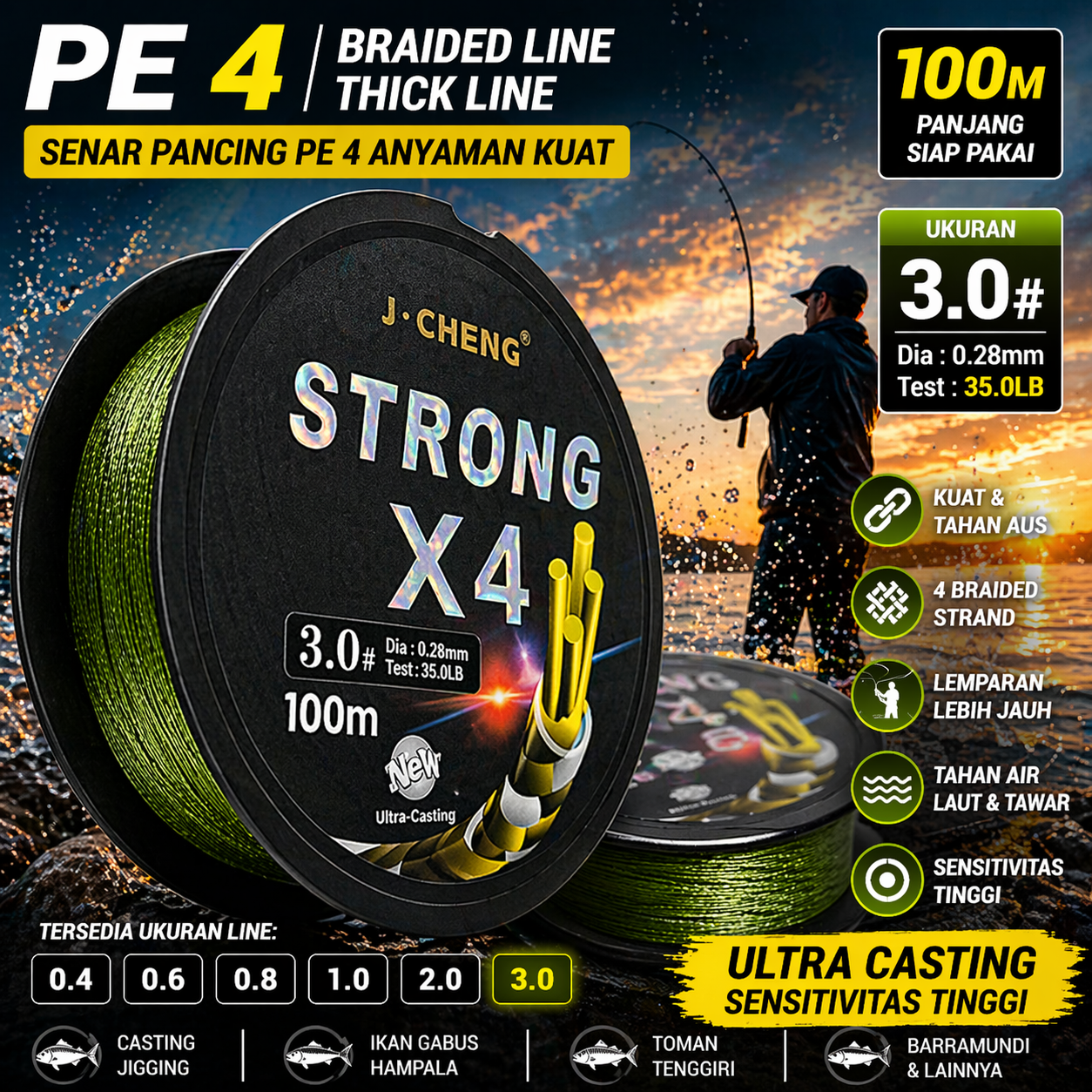 Sering kesal karena senar mudah putus, kusut saat casting, atau kurang kuat saat strike ikan besar? Saat memancing, kualitas senar pancing sangat menentukan hasil tangkapan. J-Cheng PE4 Braided Line 100 M hadir sebagai solusi dengan anyaman 4 serat PE berkualitas yang kuat, halus, dan responsif. Cocok untuk pemancing pemula maupun berpengalaman yang butuh senar pancing tahan lama untuk berbagai spot mancing.