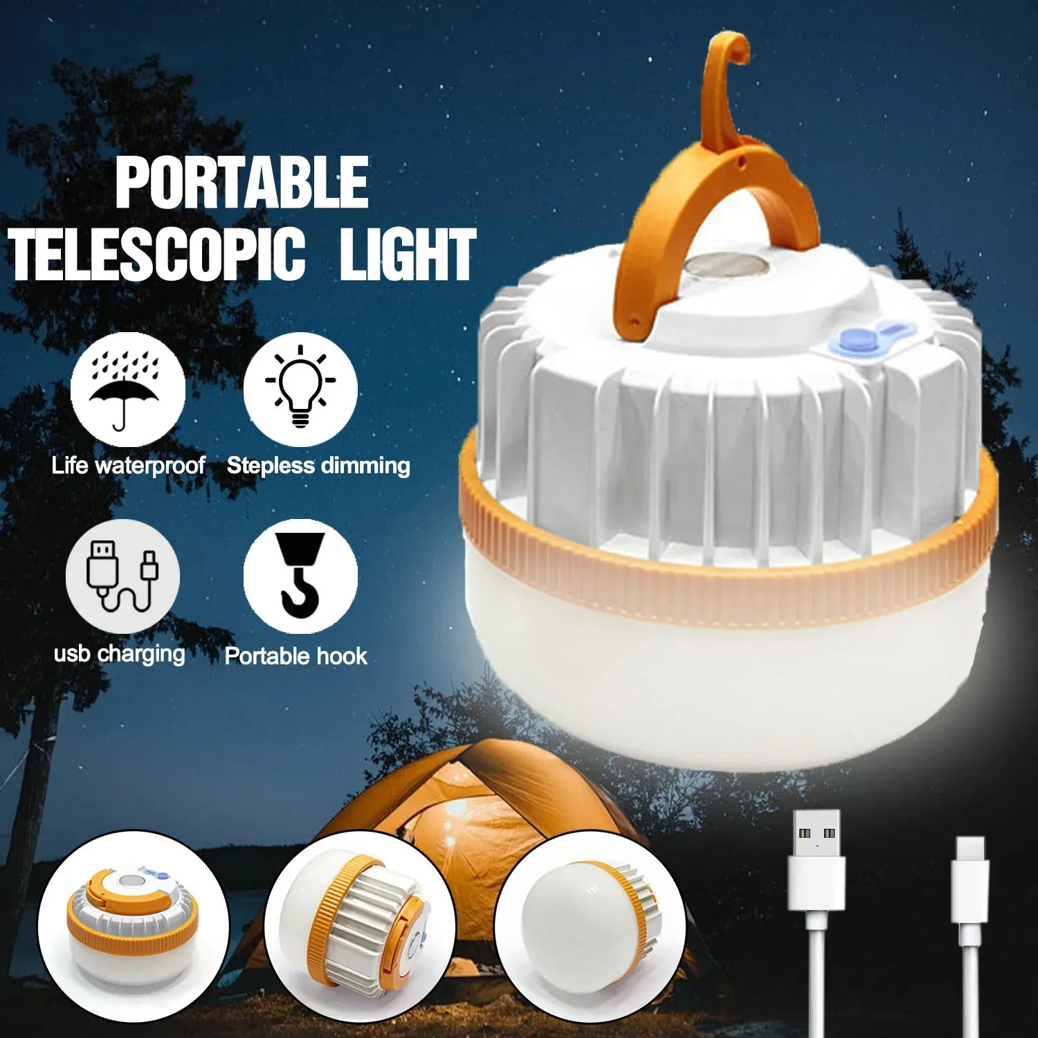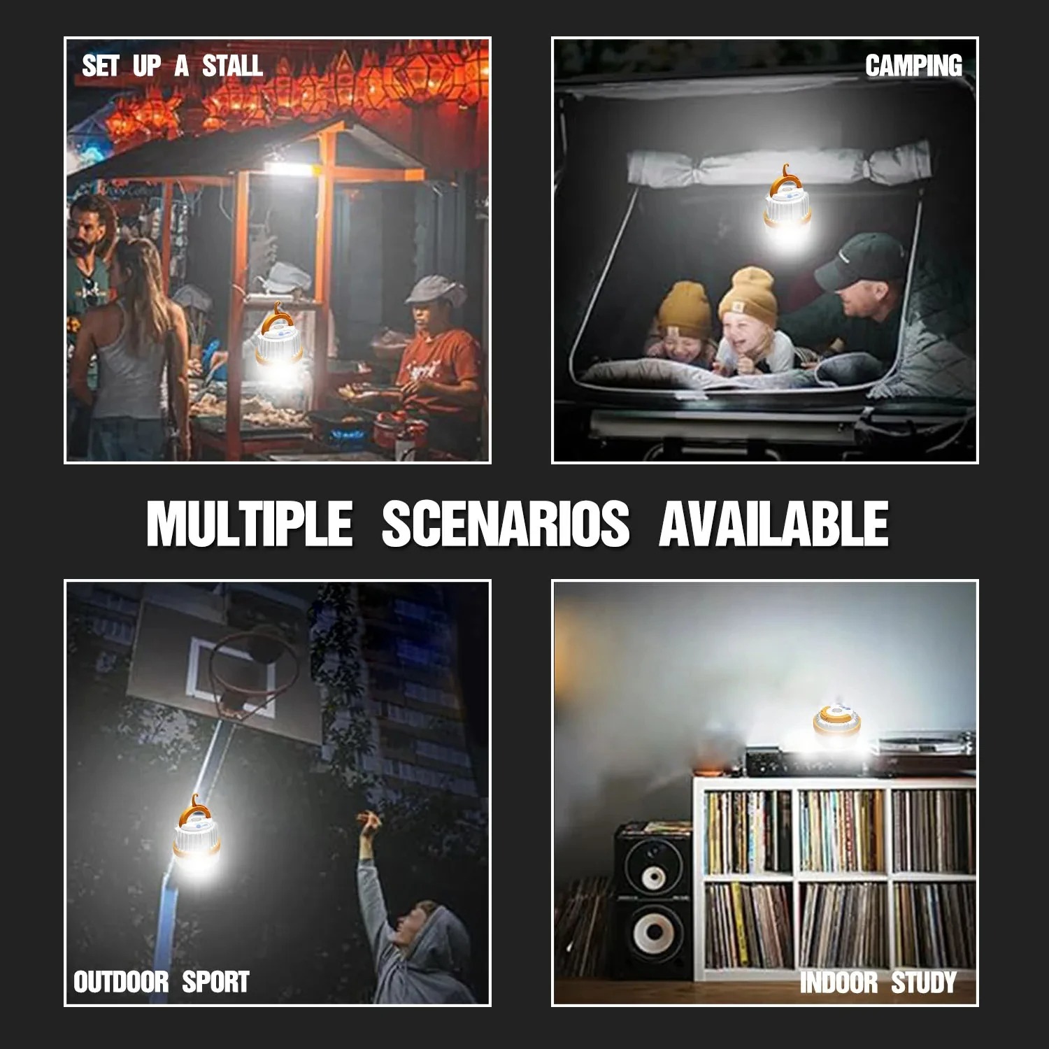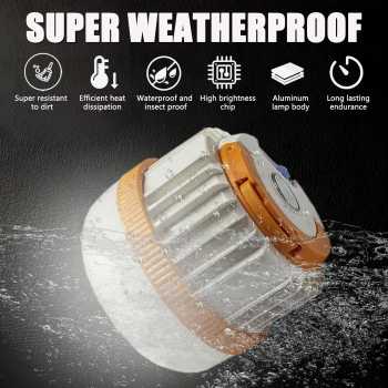 | Daya Tahan Ekstra Cipratan air tidak akan membuat lampu LED camping ini rusak. Lampu LED ini dibuat tahan air dengan perlindungan waterproof. Inilah yang membuat penggunaannya lebih luas, mulai dari camping, hiking, berjualan, pencahayaan darurat saat mati lampu, hingga pencahayaan saat memeriksa mesin mobil. |