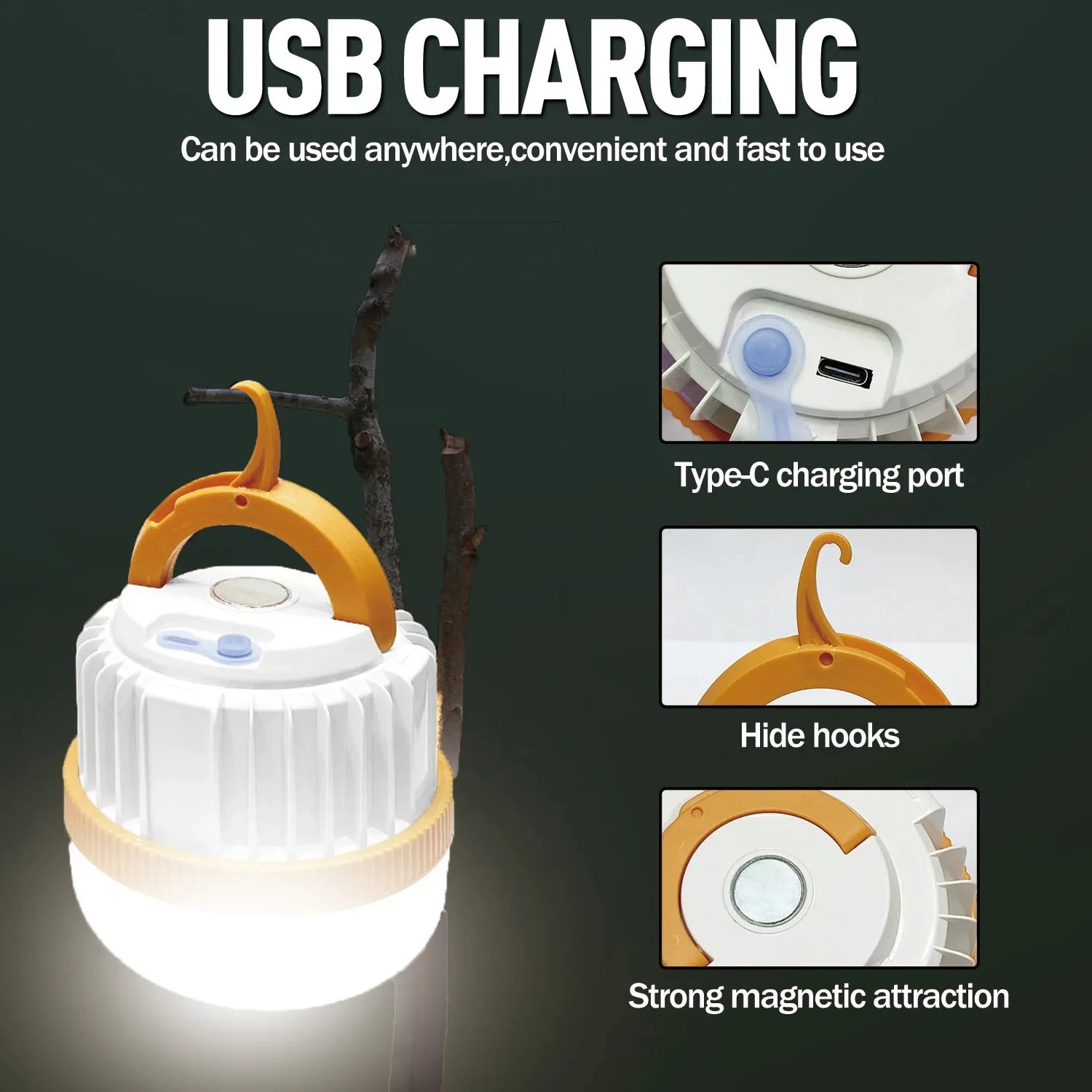 | Penempatan Mudah Karena telah dibekali gantungan, lampu LED camping ini bisa digantung di mana saja tanpa perlu tempat khusus. Selain digantung, lampu juga bisa diletakkan di media datar, misalnya di atas meja. Tersedia juga magnet di bagian atas sehingga lampu bisa ditempelkan di permukaan metal. |
