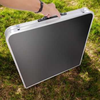 | Material Berkualitas Terbuat dari material paduan aluminium berkualitas yang kokoh namun tetap ringan, meja ini tidak hanya awet untuk penggunaan jangka panjang, tetapi juga mudah dilipat dan dipindahkan sesuai kebutuhan. |