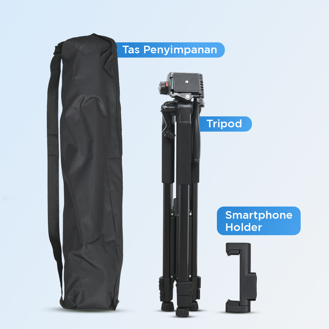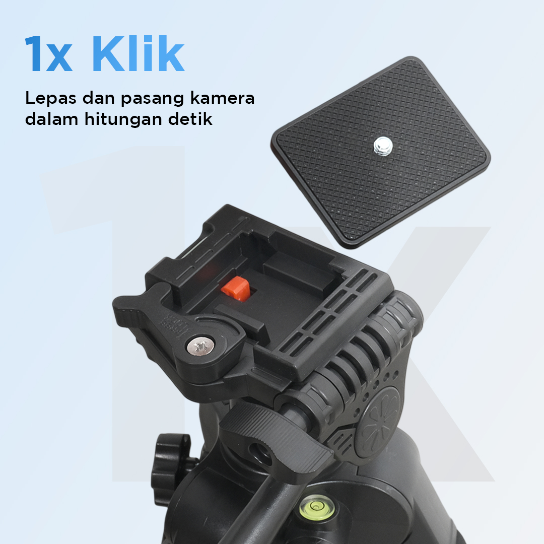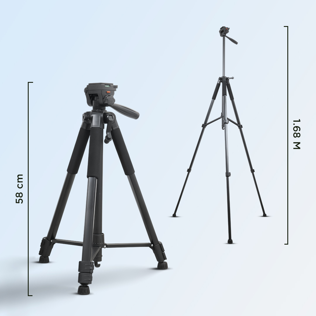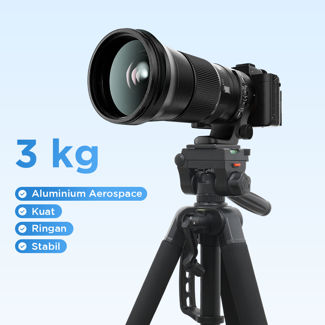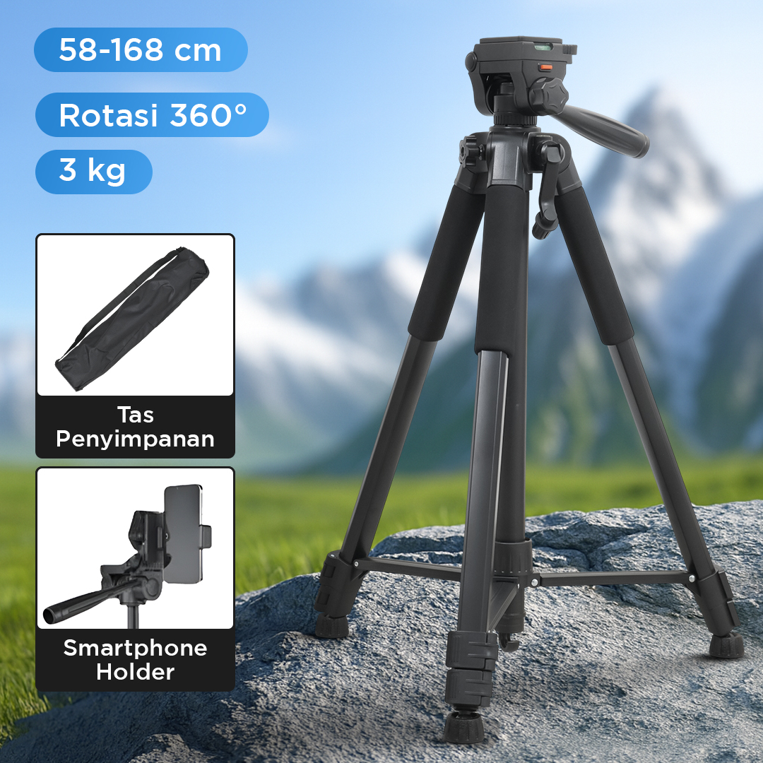 | Tinggi Sempurna untuk Gambar Ideal Atur ketinggian tripod sesuai kebutuhan untuk hasil foto yang jelas dan presisi. Menwarkan tinggi maksimal 168 cm, gunakan tripod untuk mengabadikan momen di berbagai medan. |