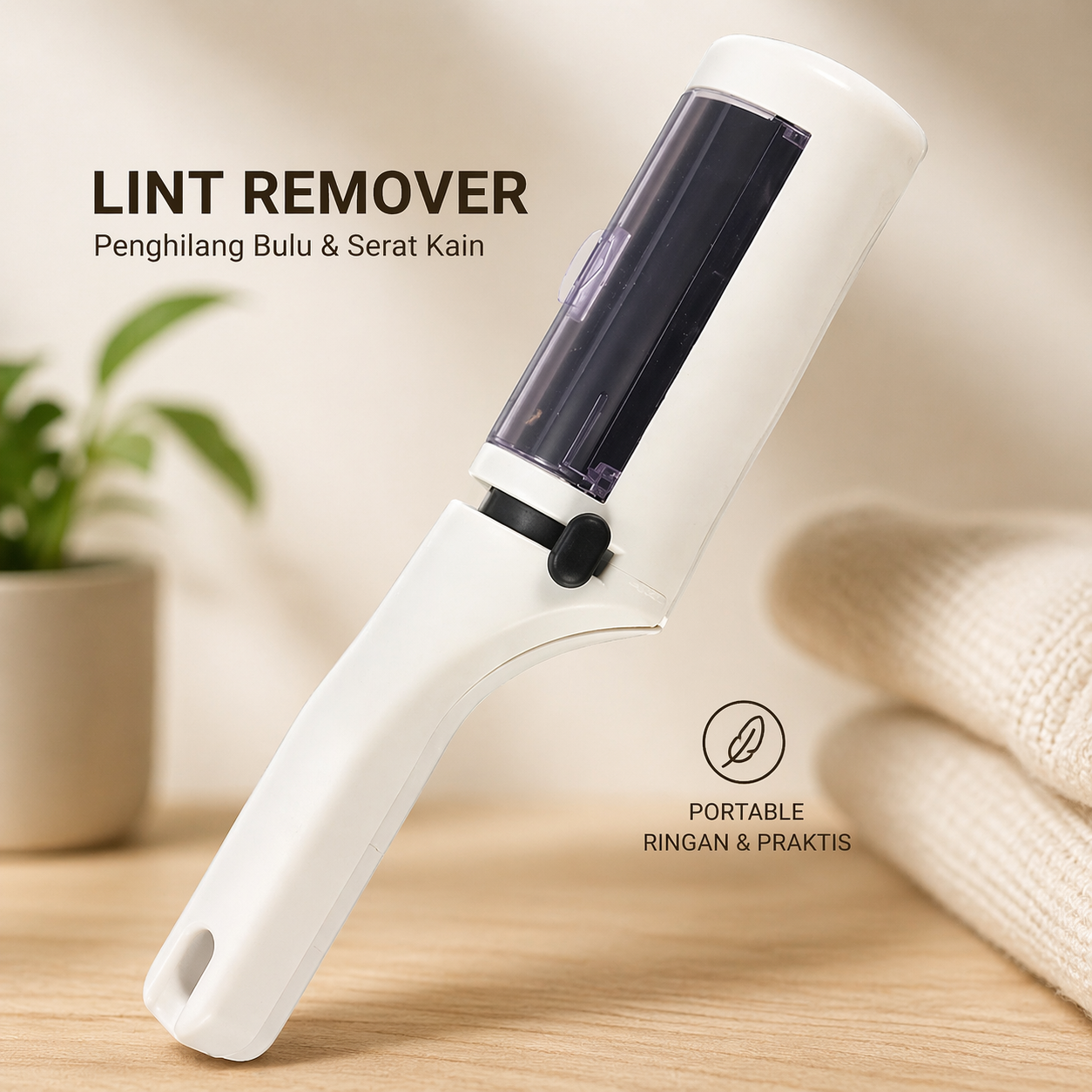| Desain Portable & Ringan Ukuran ringkas membuat alat mudah disimpan di tas, laci, atau mobil. Bisa dibawa saat travelling, ke kantor, atau digunakan kapan saja saat dibutuhkan. Bobot ringan membuat penggunaan lebih nyaman tanpa cepat lelah. Praktis sebagai penghilang bulu baju portable. |