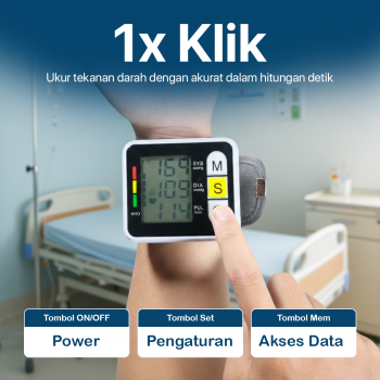 Tensimeter digital ini dirancang khusus untuk digunakan di pergelangan tangan sehingga lebih simpel dibanding model lengan. Anda bisa menggunakannya sendiri tanpa bantuan orang lain, cukup pasang dan tekan tombol. Ukurannya yang compact membuatnya nyaman dipakai dan tidak memakan tempat. Cocok untuk penggunaan sehari-hari maupun dibawa saat bepergian.