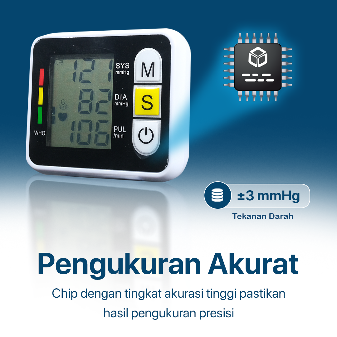 Akurasi Tekanan Darah: ± 3 mmHg Akurasi Denyut Nadi: ± 5%