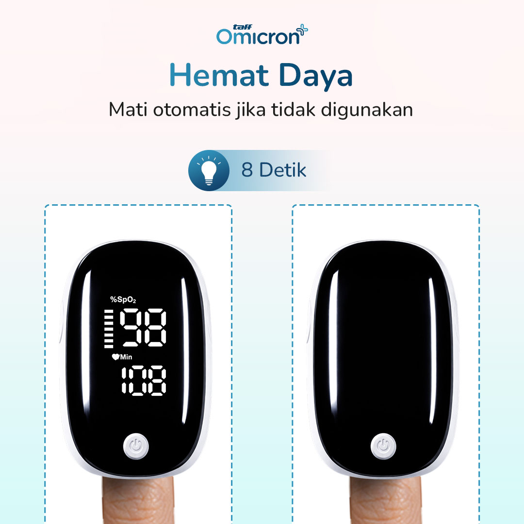 | Auto Shut-Off Hemat Energi Fitur mati otomatis setelah 8 detik tidak digunakan membantu menghemat baterai. Anda tidak perlu khawatir lupa mematikan pulse oximeter. Sistem ini juga memperpanjang masa pakai baterai pulse oximeter. Praktis untuk penggunaan sehari-hari. |