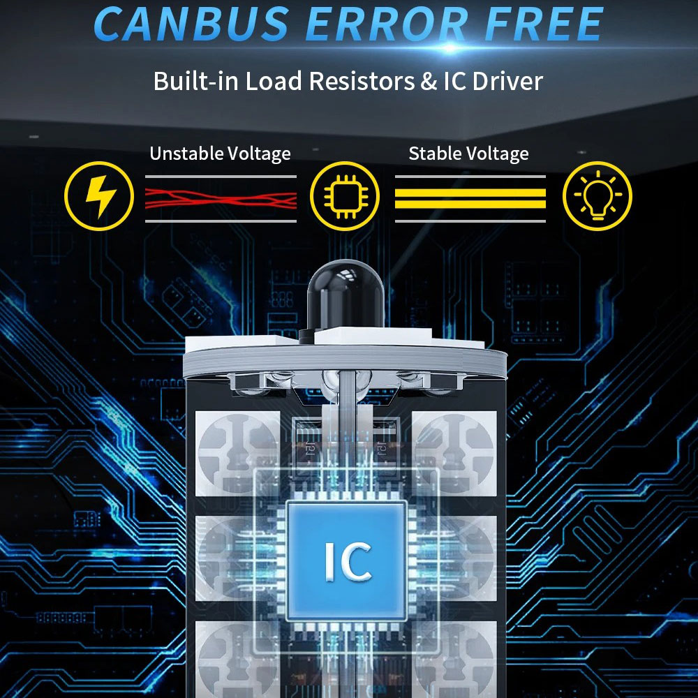 | Canbus Eror Free Dilengkapi sistem CANBUS dengan IC driver dan resistor bawaan untuk menjaga kestabilan arus listrik. Fitur ini mencegah munculnya indikator error di dashboard mobil modern. Selain itu, lampu juga tidak mengalami kedip atau flicker sehingga lebih nyaman digunakan. |
