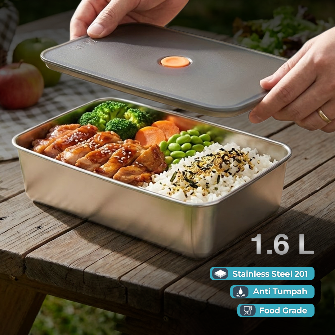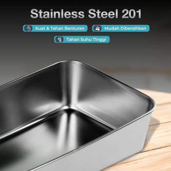 | Anti Karat dan Higienis Terbuat dari stainless steel 201 yang tahan karat, kotak makan ini aman untuk berbagai jenis makanan. Permukaan tidak berpori membuatnya lebih higienis, mudah dibersihkan, dan tidak menyerap bau. |