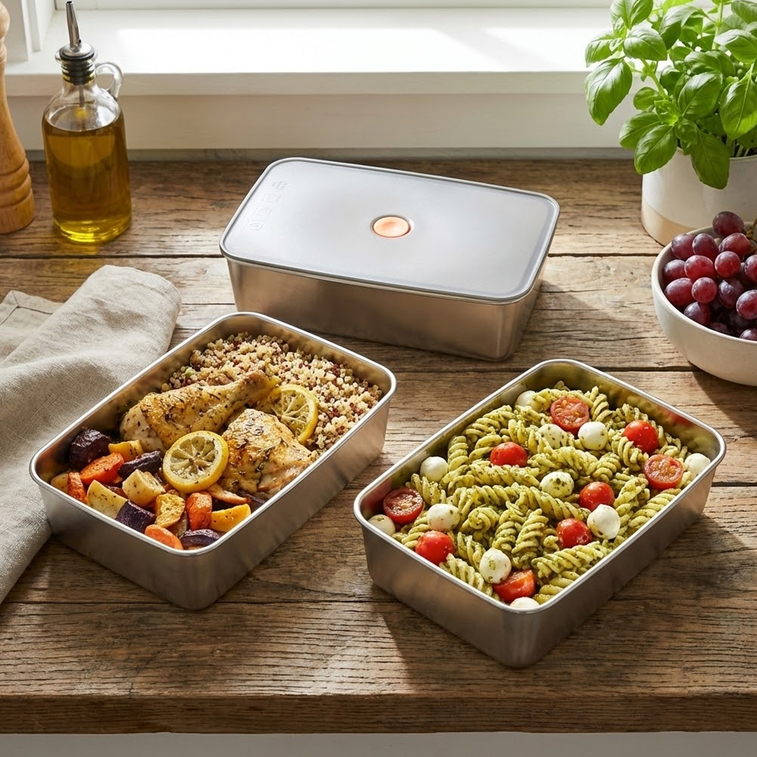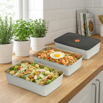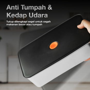 | Jaga Kesegaran Makanan Tutup kotak makan dilengkapi lubang vakum untuk menjaga kesegaran makanan dengan mencegah udara lembap masuk. Segel silikon di pinggirnya membantu mencegah tumpah dan menjaga makanan lebih tahan lama. |