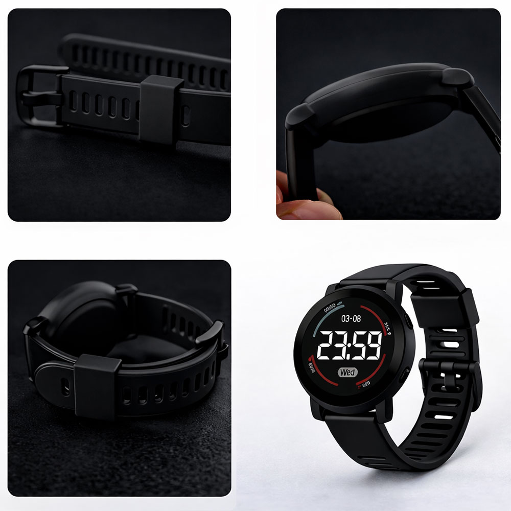 | Tali Silikon Lembut Tali berbahan silikon selebar 18 mm terasa lembut di pergelangan tangan anak dan tidak menyebabkan iritasi kulit meski dipakai seharian. Bodinya terbuat dari karet yang kokoh namun ringan, menjadikan jam tangan ini tahan terhadap benturan ringan akibat aktivitas anak yang dinamis. |