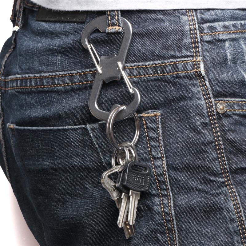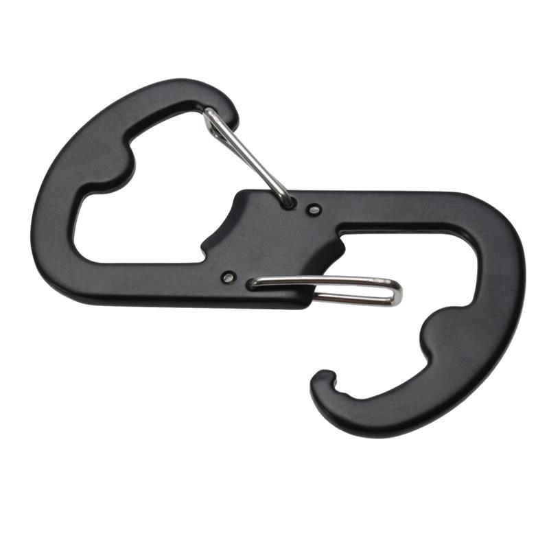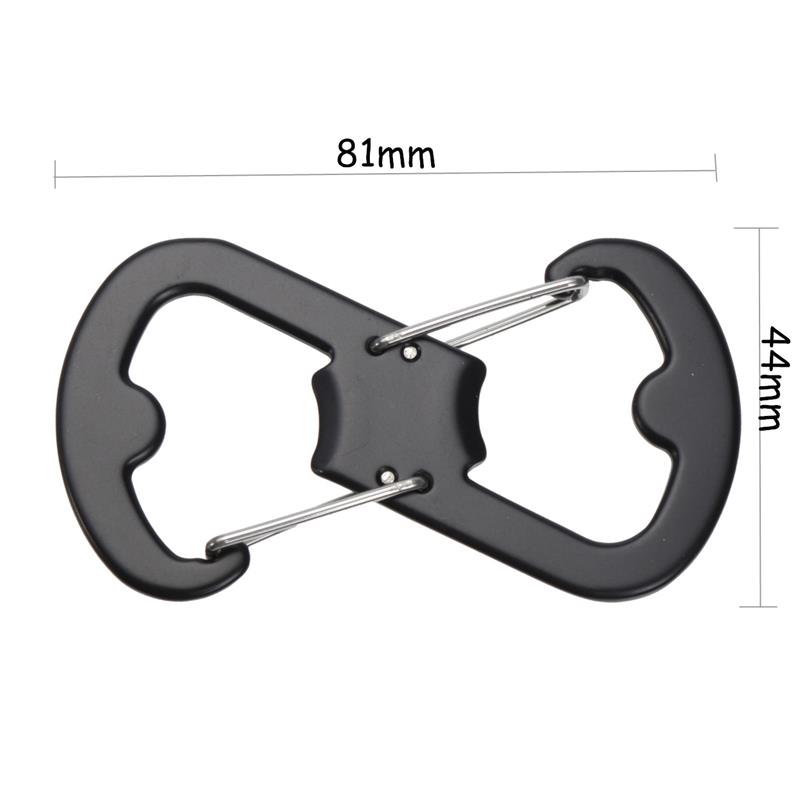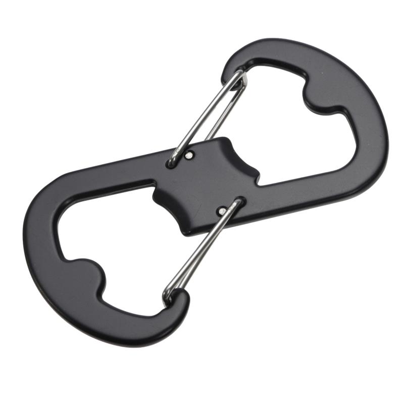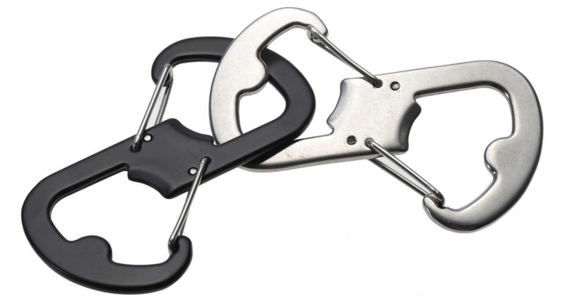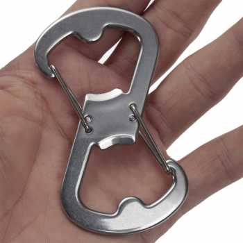 | Multifunctional Carabiner Memiliki bentuk seperti angka 8. Bentuk ini memiliki 2 buah pengait pada bagian atas dan bawah sehingga Anda dapat mengaitkan 2 buah benda secara bersamaan. Selain karabiner juga berfungsi sebagai pembuka botol berkat designnya yang inovatif.