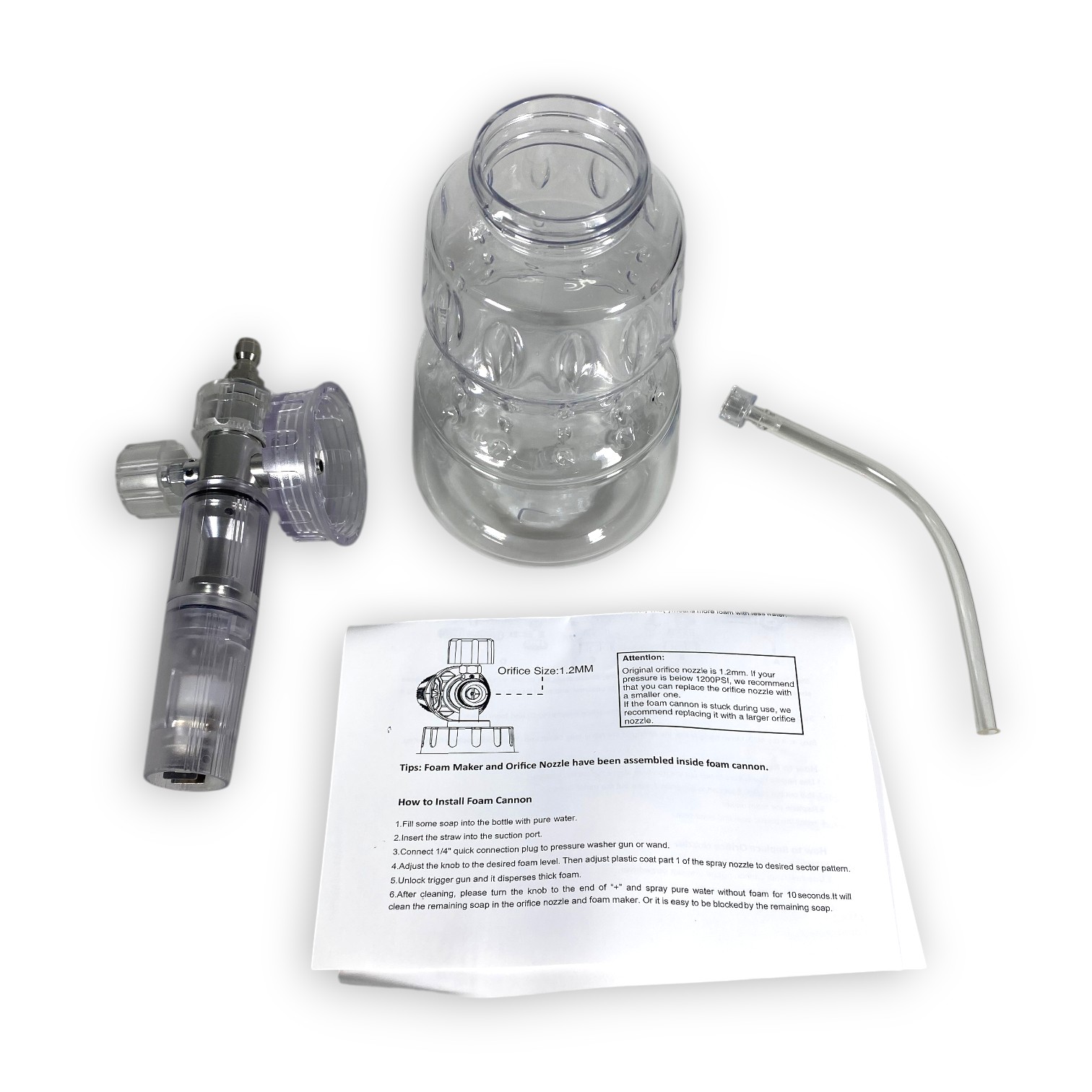 | Kompatibel dengan High Pressure Washer Dirancang bekerja optimal dengan mesin cuci bertekanan tinggi (high pressure washer) seperti Karcher, Lavor, Nilfisk, dan merek sejenis. Tekanan air yang masuk ke dalam botol akan menghasilkan campuran udara-air-sabun yang menghasilkan busa padat dan kering (snow foam) untuk coverage maksimal. |