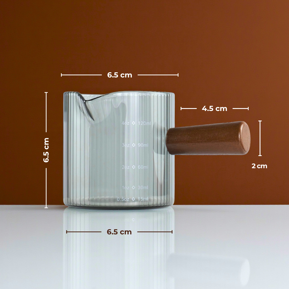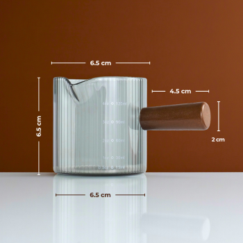 | Takaran Akurat Gelas takar ini hadir dengan kapasitas 120 ml yang memiliki indikator takaran berbentuk tulisan di permukaan gelas. Takaran yang dibuat sudah disesuaikan dengan akurat. Sehingga dapat memastikan setiap takaran memiliki rasio pengukuran yang presisi sehingga mampu menciptakan kreasi kopi yang lebih sempurna. |